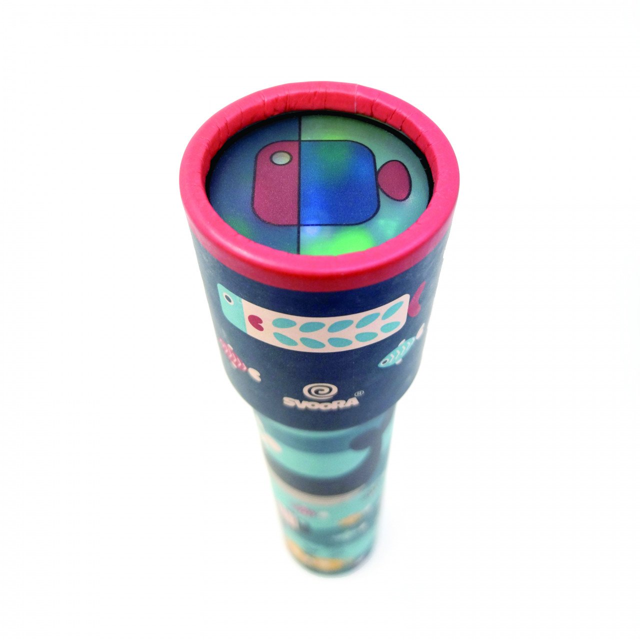 Caleidoscop rotativ Animale din ocean Bucăți mici și colorate care se sparg în forme caleidoscopice unice: Descoperiți o lume de iluzii optice fascinante, cu modele frumoase inspirate de tema "Lumea animalelor"! Un joc ecologic realizat din hârtie, cu o finisare mată plăcută. Vârsta recomandată: + 3 ani. Avertisment: Contraindicat copiilor sub 3 ani, conține părți mici. A se utiliza sub stricta supraveghere a unei persoane adulte. Producător: Svoora, Grecia.