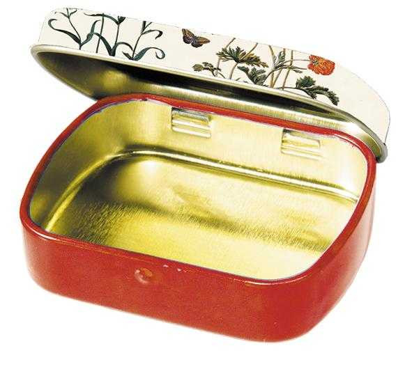 Mini cutie metalică Mini cutie metalică decorativă cu imprimeu artistic M. Sibylla, Merian. Dimensiuni: 6,3 x 5,2 x 1,8 cm. AVERTISMENT: Nu este o jucărie! Contraindicat copiilor sub 3 ani. Producător: Fridolin, Germania.