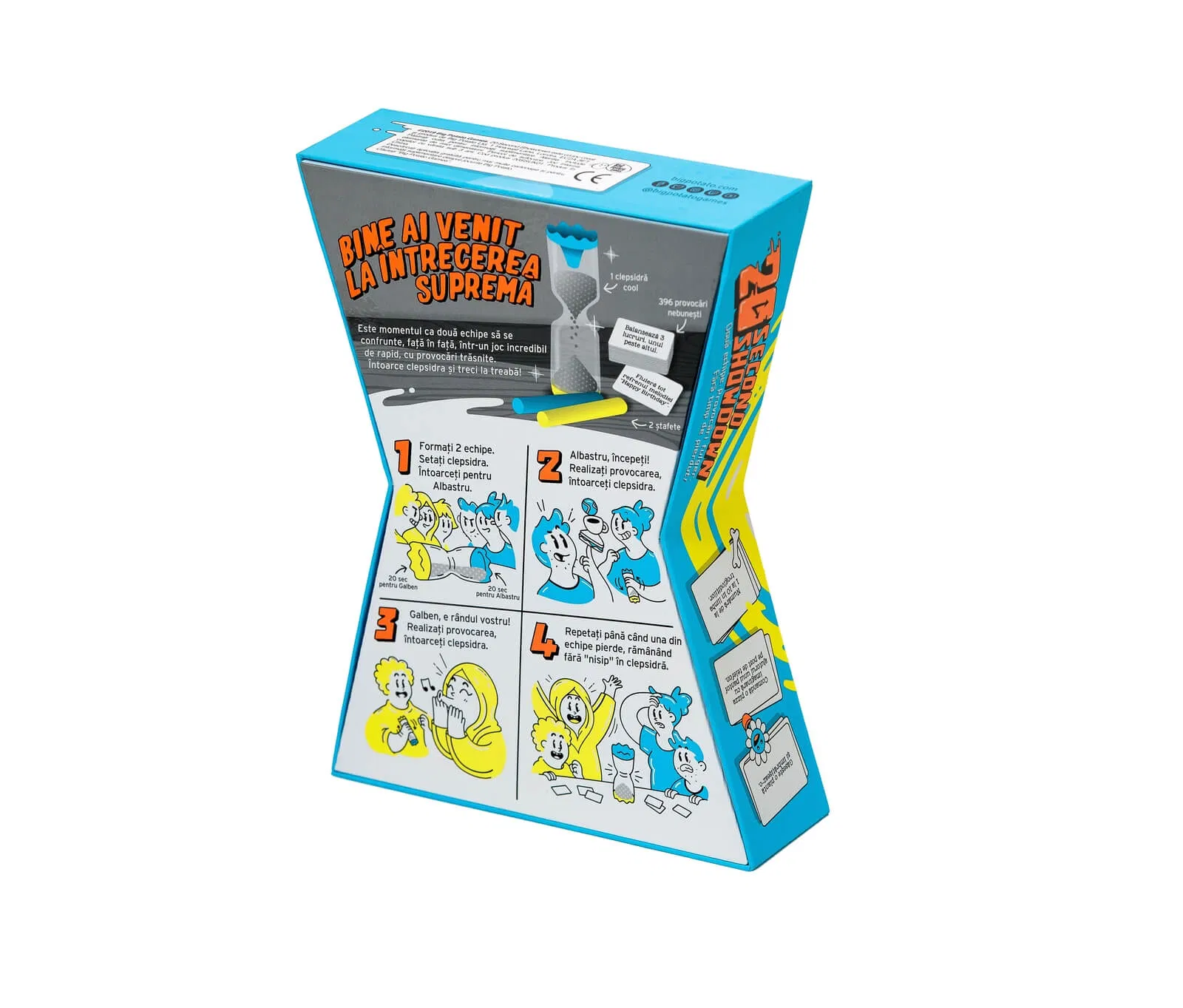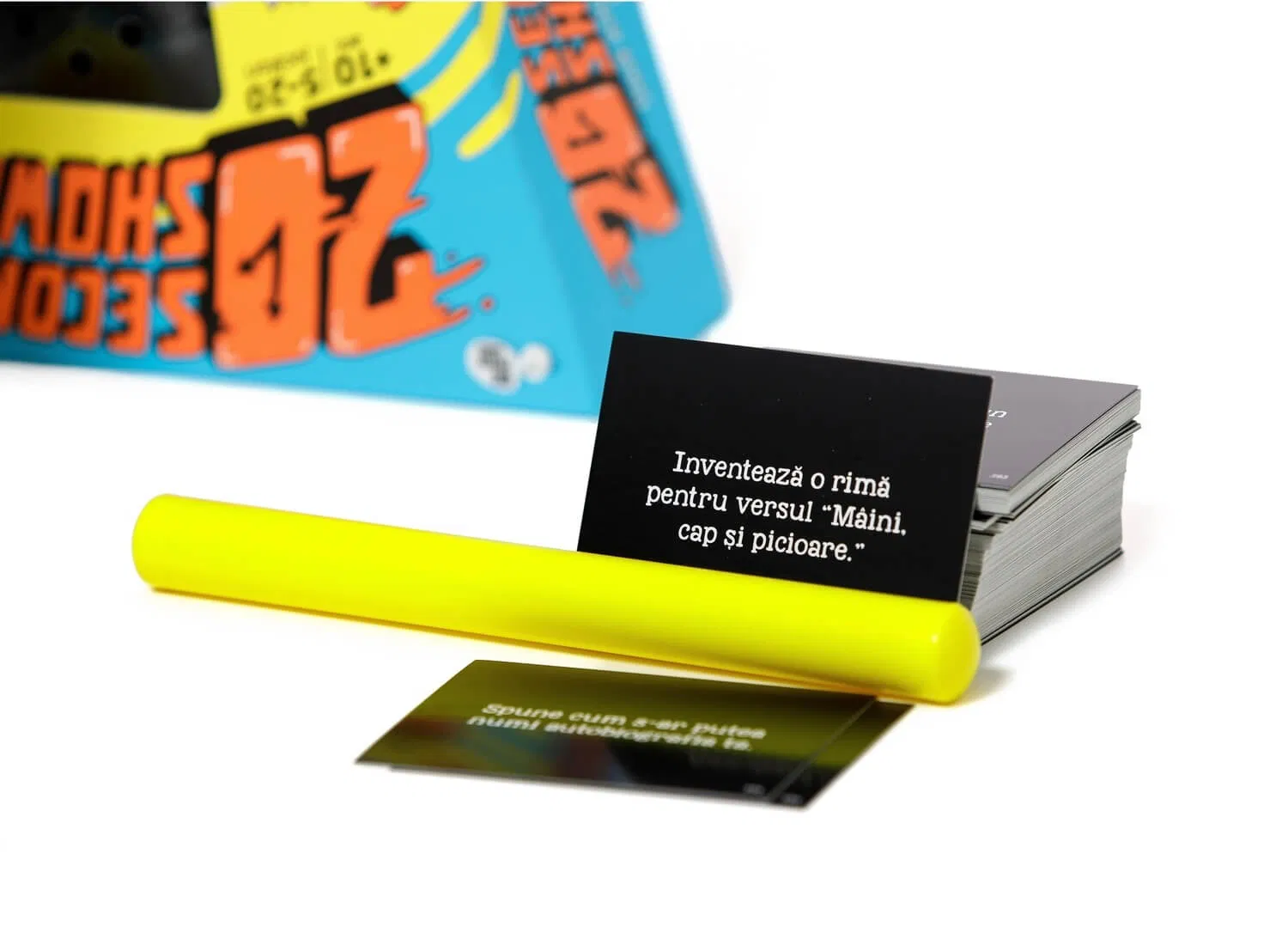 Transforma orice intalnire intr-o competitie exploziva cu 20 Second Showdown (RO), jocul de petrecere in care doua echipe se dueleaza contratimp pentru a indeplini provocari rapide si amuzante! Perfect pentru grupuri mari, jocul aduce energie, miscare si hohote de ras, totul presat de cele 20 de secunde din clepsidra. Jocul este in limba romana.