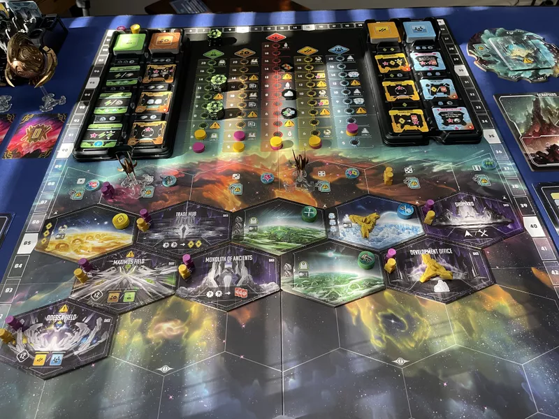 Fiecare factiune are propriile abilitati, combinatii de module si strategii de dezvoltare, iar succesul depinde de modul in care echilibrezi progresul intre cele cinci piste majore: Science, Industry, Commerce, Civilization si Supremacy. Fiecare pas inainte pe aceste track-uri aduce recompense, abilitati si puncte de victorie, construind o experienta de joc extrem de dinamica si tensionata.