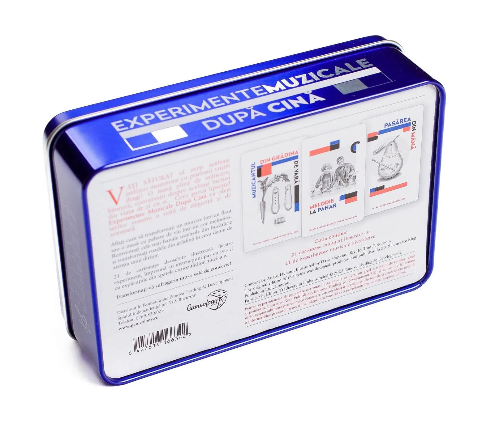 Da un plus de energie si voie buna serilor tale cu Experimente Muzicale dupa Cina (RO), o colectie amuzanta de activitati creative ce transforma obiectele din casa in instrumente muzicale neasteptate! Ideal pentru seri relaxante cu prietenii, acest set aduce provocari interactive care combina umorul, curiozitatea si un strop de stiinta sonora. Produsul este in limba romana.