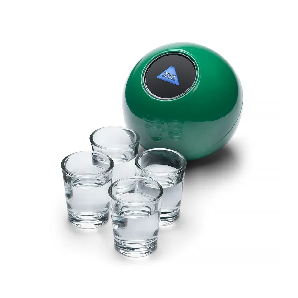 Contine Misterioasa Bila 8 si 4 pahare de shot-uri.