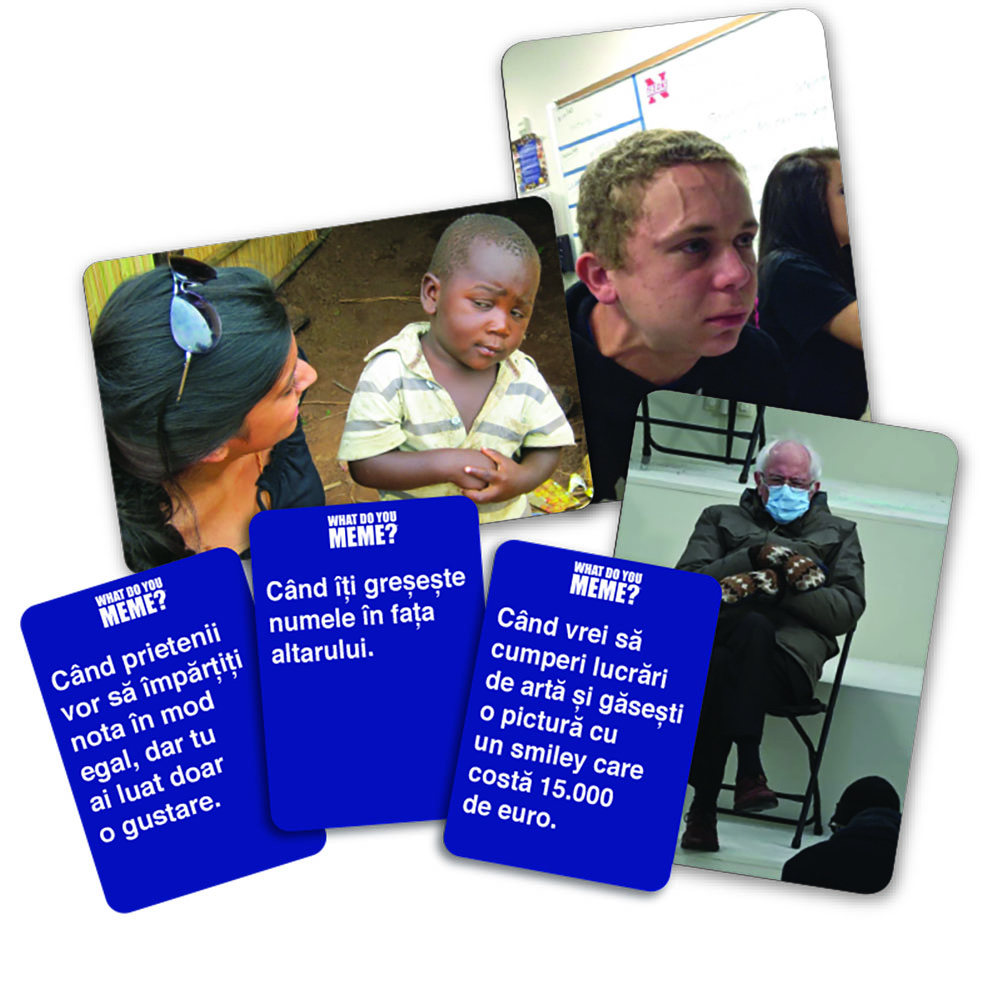 Scopul jocului este simplu si genial: potriveste o imagine de tip Meme cu cea mai amuzanta subtitrare dintre cartile din mana ta si creeaza cea mai comica combinatie posibila. In fiecare runda, un jucator este „judecatorul”, iar ceilalti concureaza pentru titlul suprem de Rege sau Regina a Meme-urilor. 😎