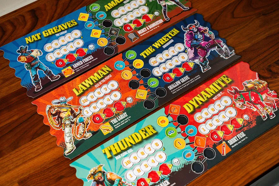 Fiecare personaj are abilitati speciale, miscari emblematice si o personalitate unica – de la cowboy-ul Lawman pana la explozivul Dynamite sau amenintatorul The Wretch. Pe parcursul jocului, poti schimba luptatorii, activa signature moves si strange energie Pop pentru a domina ringul. Cu un mix de strategie, cooperare si haos controlat, Rowdy Partners este perfect pentru serile de joc dinamice si pline de rasete.