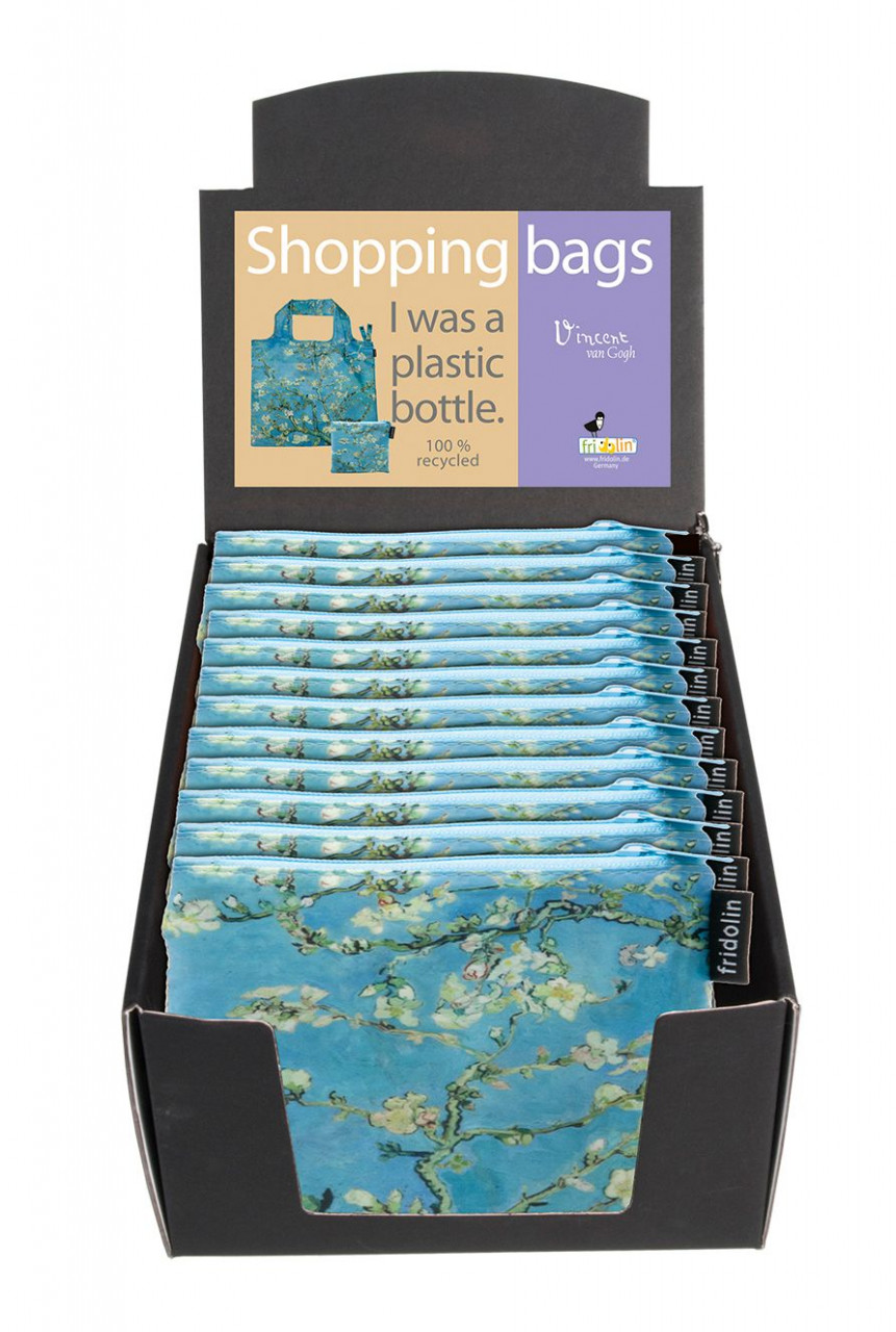 Sacoșa design Ramuri de migdal înflorite Sacoșa încăpătoare pentru cumpărături pe care o împachetezi, o pui în buzunar sau în geantă și o porți cu tine peste tot. Design: Van Gogh, Ramuri de migdal inflorite. Dimensiune sacosă 48 x 67 cm. Confecționată 100% din materiale recilate . Producător: Fridolin, Germania.