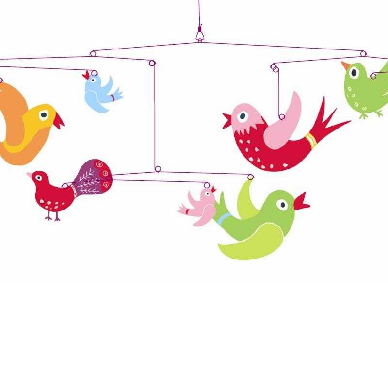 Decoratie mobila cu pasari pentru camera copilului Decorație mobilă, ușoară si poetică, cu forme care dansează în spațiu. Un subtil echilibru în mișcare, între vis și realitate. Setul conține piese de sprijin (sârma întărită) și formele decorative. În interiorul cutiei se află schema de asamblare și montare (în imagini). Dimensiune produs: 80 cm. Confecționat din materiale și vopsele non toxice conform reglementărilor EN71&ASTM. AVERTISMENT: Acest produs este un obiect de decor. Se recomandaă poziționarea acestuia la o distanță de siguranță, in așa fel incât să nu fie la indemâna copilului. Producător: Djeco, Franța.