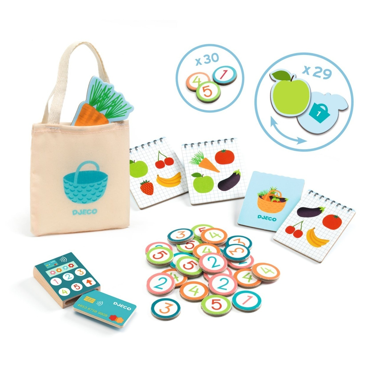 Joc de rol Magazinul Léa & Milo Cei mici pot aranja fructele și legumele, le pot cântări, scana la casa de marcat, și chiar calcula bonul de cumpărături. Clientul își poate face cumpărăturile după cum dorește sau urmând una dintre cele 4 liste tematice de cumpărături . Conține: 29 fructe și legume din carton gros cu prețuri inscripționate, tejghea, cântar, terminal POS, card, 30 monede, 4 tăblițe cu prețuri, 4 liste de cumpărături, săculeț textil. Dimensiuni magazin montat: 24,5 x 27,5 x 20,5 cm Vârsta recomandată +4 ani. Confecționat din lemn certificat FSC® și carton gros de calitate conform reglementărilor EN71&ASTM. AVERTISMENT! Contraindicat copiilor sub 3 ani. A se folosi sub directa supraveghere a unei persoane adulte. Producător: Djeco, Franța