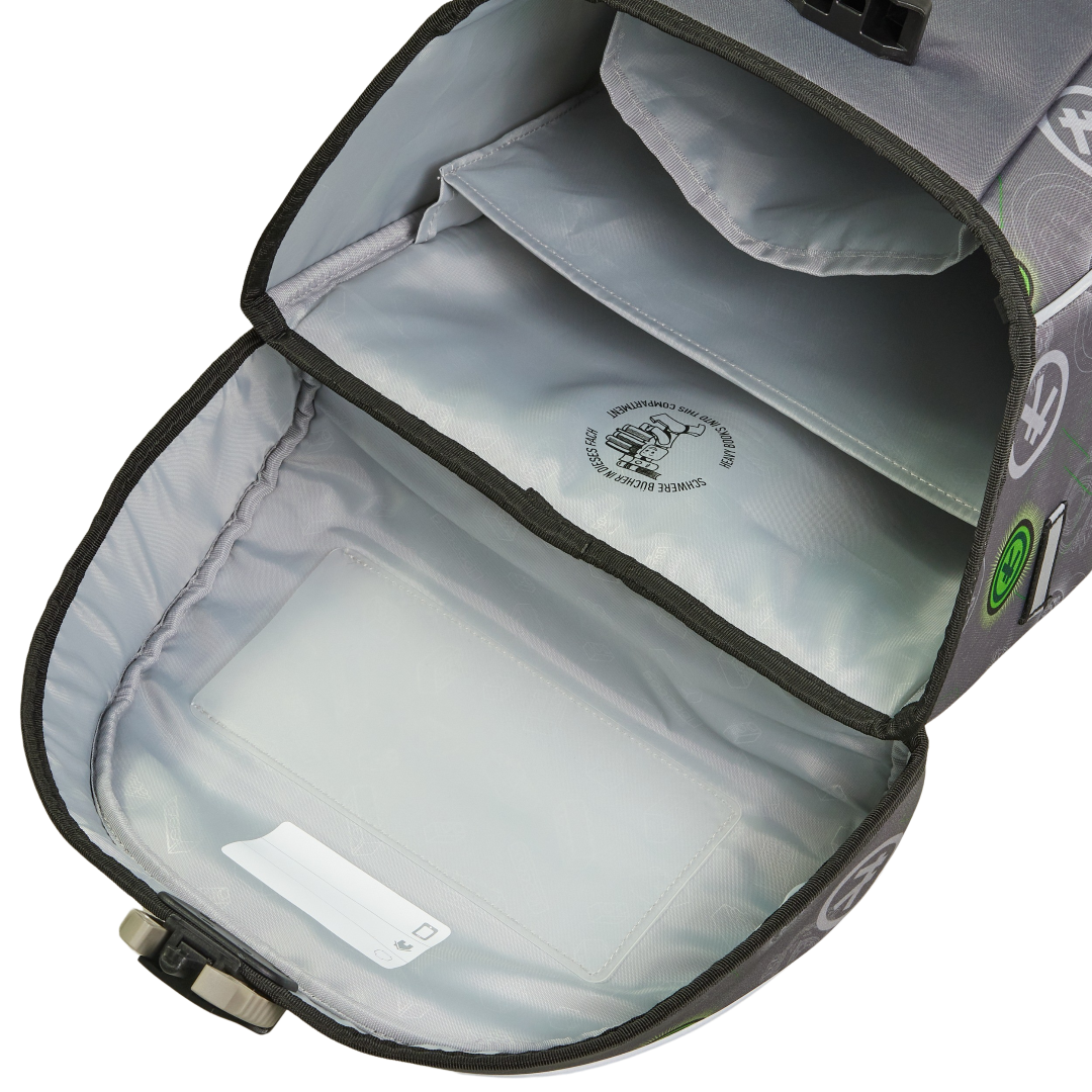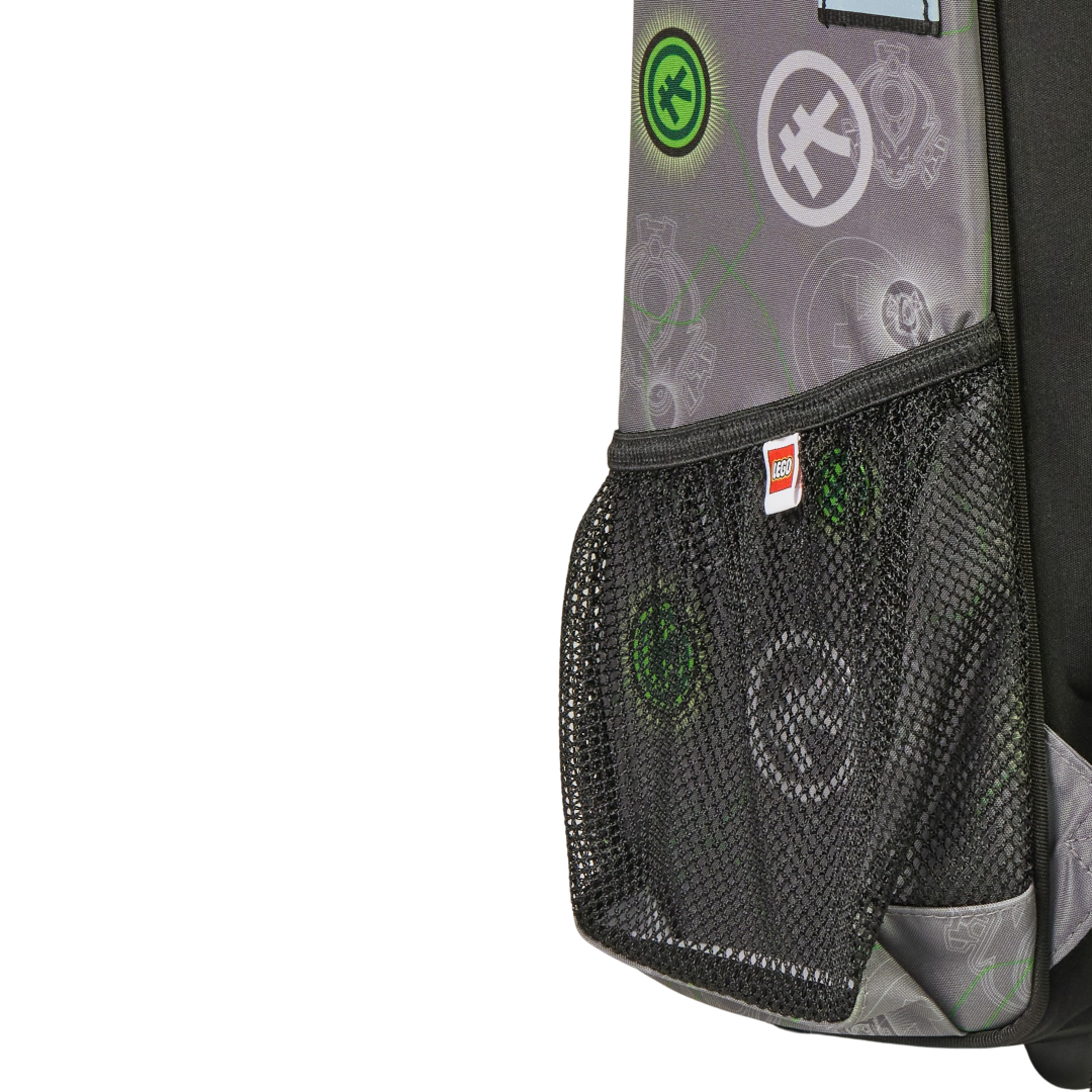 Rucsacul Easy Light este un ghiozdan spaios ţi uţor, cu mult loc pentru cări, caiete, penar ţi cutia de prânz, sticla pentru apă. Are două buzunare laterale din plasă, utile pentru sticla de apă ţi fructe. Pentru un confort sporit la purtare, rucsacul dispune de un panou ergonomic la spate, bretele reglabile ţi o curea la piept, precum ţi un buzunar interior pentru a ine cele mai grele cări aproape de spate. În compartimentul principal mare poi ataţa cheile sau portofelul LEGO, iar orarul ţcolii este poziionat în partea de sus a capacului, astfel încât să ai mereu programul zilei la îndemână. Pentru a menine stabilitatea atunci când capacul este deschis, rucsacul are patru picioruţe sub bază, care protejează de murdărie.