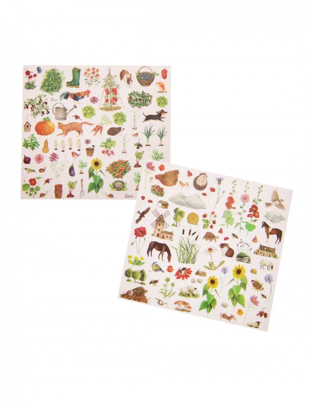 Abtibilduri de transferat Gradina Se mai numesc și decalcomanii. Abțibilduri cu animale și plante din colecția Le Jardin du Moulin. Folosind un creion, răzuiți imaginile pentru a le transfera pe suprafața pe care doriți să o decorați. Setul include 2 planșe cu fundal și 2 foi de decalcomanii (peste 130 de abțibilduri). Dimensiune 22 x 22 cm. Vârsta recomandată: +4 ani AVERTISMENT: Contraindicat copiilor sub 3 ani. Poate conține părți mici. Se recomandă supravegherea copilului de către un adult în timpul jocului. Citiți cu atenție eticheta produsului înainte de a înmâna jucăria copilului. Fabricate în China pentru Moulin Roty, Franța