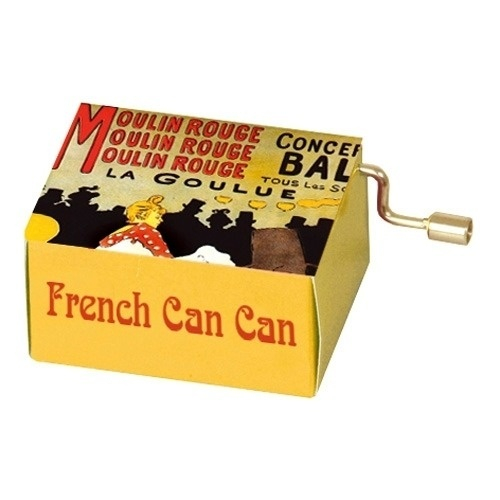 Flasneta Moulin Rouge Flașnetă cu mecanism confecţionat din lemn şi metal, având carcasa din carton cu detalii aurii. Melodie: French Can Can Design Concert bal tous les soirs – La Goulue Acest articol nu este o jucărie. Producător: Fridolin, Germania.