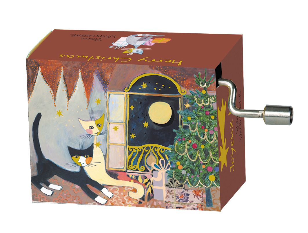 Flașnetă Pisici lângă brad, design Rosina Wachtmeister Flașnetă cu mecanism confecţionat din lemn şi metal, având carcasa din carton cu detalii aurite. Melodie: Silent Night Design Rosina Wachtmeister, Aventura d'amore Acest articol nu este o jucărie. Producător: Fridolin, Germania