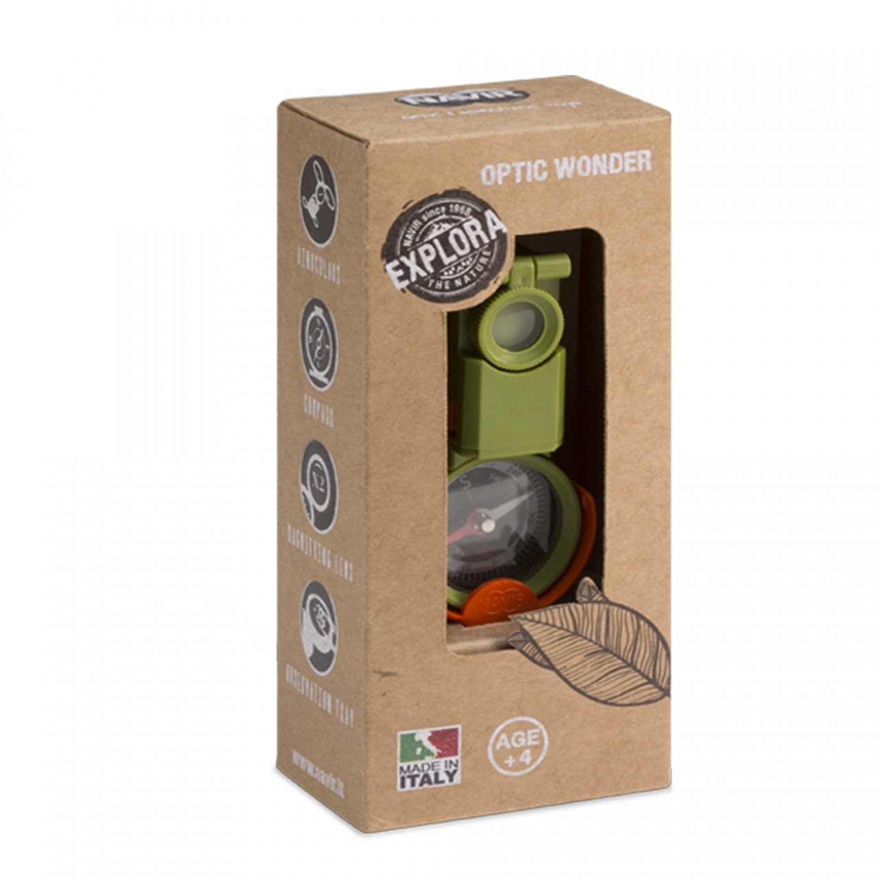 Instrument optic multifunctional Explora Instrument optic didactic multifuncțional : binoclu cu lupă, busolă, oglindă de mărire și plan de observație, oglindă pentru semnale și vizor stereoscopic. Cu clemă pentru a putea fi prins la centură. Dimensiune instrument închis 4.5 x 11 x 5 cm. Vârsta recomandată: + 4 ani. Fabricat din plastic ABS (rezistent la impact, la temperaturi ridicate și la contactul cu substanțe chimice) și plexiglas. AVERTISMENT: Contraindicat copiilor sub 3 ani. A se utiliza sub directa supraveghere a unei persoane adulte. Producător: Navir, Italia. Manual Instrument optic multifunctional Explora Navir - descarca fisier