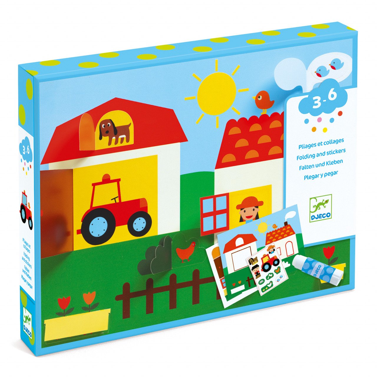 Colaje V-ați ascunselea Un joc creativ cu colaj și pliere. Copiii urmează instrucțiunile pentru a-și crea propriul joc ascunselea. Îndepărtează piesele predecupate, le pliază și le lipesc de cele 4 modele ilustrate. Ei pot adăuga câteva finisaje minunate decorându-și desenele cu autocolante. Activitate manuală pentru dezvoltarea dexterității. Conținut: 4 modele ilustrate de completat (26x20 cm), 4 foi cu piese predecupate de lipit, foaie de autocolante, lipici și broșură cu instrucțiuni pas cu pas. Vârsta recomandată: 3-6 ani. Confecționat din materiale non-toxice, cu vopsele non-toxice, conform reglementărilor EN71&ASTM. AVERTISMENT: Contraindicat copiilor sub 3 ani. Conține părți mici. Se recomandă supravegherea copilului de către un adult în timpul jocului. Citiți cu atenție eticheta produsului înainte de a înmâna jucăria copilului. Producător: Djeco, Franța.