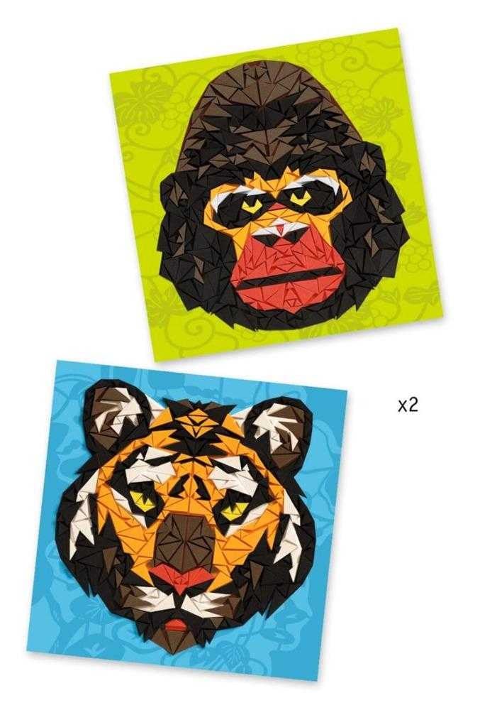 Mozaic Khan O activitate originală de colaj mozaic în care copiii lucrează cu piese triunghiulare. Urmând pas cu pas instrucțiunile din broșură, ei lipesc cu grijă triunghiurile de spumă adezivă pentru a crea fața tigrului și a gorilei. Conținut: 2 cartonașe ilustrate (21 x 21 cm), sortiment de autocolante triunghiulare din spumă (6 forme, 6 culori), broșură color cu instrucțiuni pas cu pas. https://www.youtube.com/watch?v=IfodIzLcOzA&list=PLf4YUEpnRANEUU0FXwwMLSn51eHXj_Z20&index=10 Vârsta recomandată: 7-12 ani. Confecționat din materiale non-toxice, cu vopsele non-toxice, conform reglementărilor EN71&ASTM. Certificare FSC. AVERTISMENT: Contraindicat copiilor sub 3 ani. Conține părți mici. Se recomandă supravegherea copilului de către un adult în timpul jocului. Citiți cu atenție eticheta produsului înainte de a înmâna jucăria copilului. Producător: Djeco, Franţa. https://www.youtube.com/watch?v=DicFryKq8Mg&list=PLf4YUEpnRANEUU0FXwwMLSn51eHXj_Z20&index=9