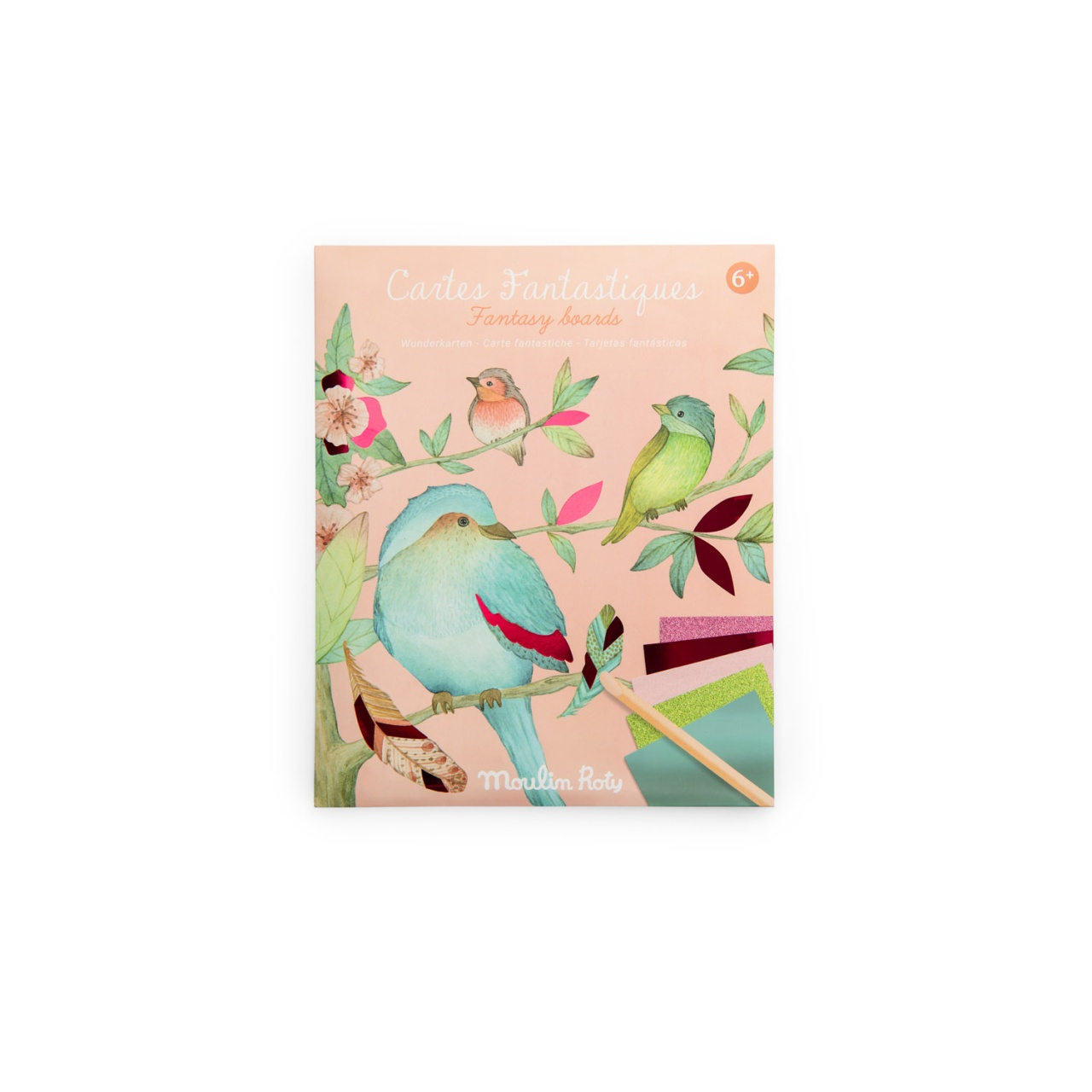 Joc creativ Planse fantastice Rosalies Dă frâu liber creativității decorând ilustrațiile Rosalies cu motive fantastice animale și vegetale! Conține 6 planșe (păsări, fluturi, vulpi etc.), 10 coli, instrument din lemn pentru răzuit. Dimensiuni : 20 x 24.5 x 0.5 cm. Vârsta recomandată: +6 ani. Confecționat din hârtie și plastic. AVERTISMENT: Contraindicat copiilor sub 3 ani, conține piese mici, pericol de sufocare. A se utiliza sub directa supraveghere a unui adult. Producător Moulin Roty, Franța.
