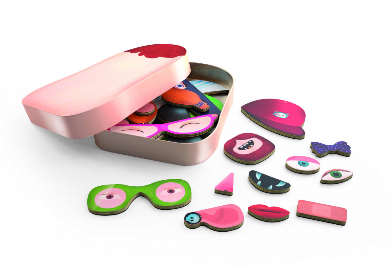 Joc cu magnet Portraito Inzebox: un nou mod de a te juca cu magneți! Setul include o cutie metalică siluetă de care copiii pot lipi piesele magnetice din lemn. Portraito este un joc distractiv în care copiii pot crea portrete de fete și de băieți, cu stări și expresii diferite! Ambele părți ale cutiei sunt ilustrate, ceea ce înseamnă că ambele pot fi jucate. Piesele pot fi depozitate cu ușurință în cutia metalică la sfârșitul unei sesiuni de joacă. Perfect și pentru călătorii! Conține o cutie metalică și 41 piese magnetice din lemn. Dimensiune: 14 x 20.4 x 5.5 cm. Vârsta recomandată: +3 ani. Confecționat din materiale non-toxice, conform reglementărilor EN71&ASTM. AVERTISMENT! Acest joc contine magneti! Magnetii se lipesc unul de altul sau de un obiect metalic; in interiorul corpului uman pot provoca accidente. Cereti imediat asistenta medicului in caz de inghitire. Contraindicat copiilor sub 3 ani. A se folosi sub directa supraveghere a unei persoane adulte. Producător: Djeco, Franța
