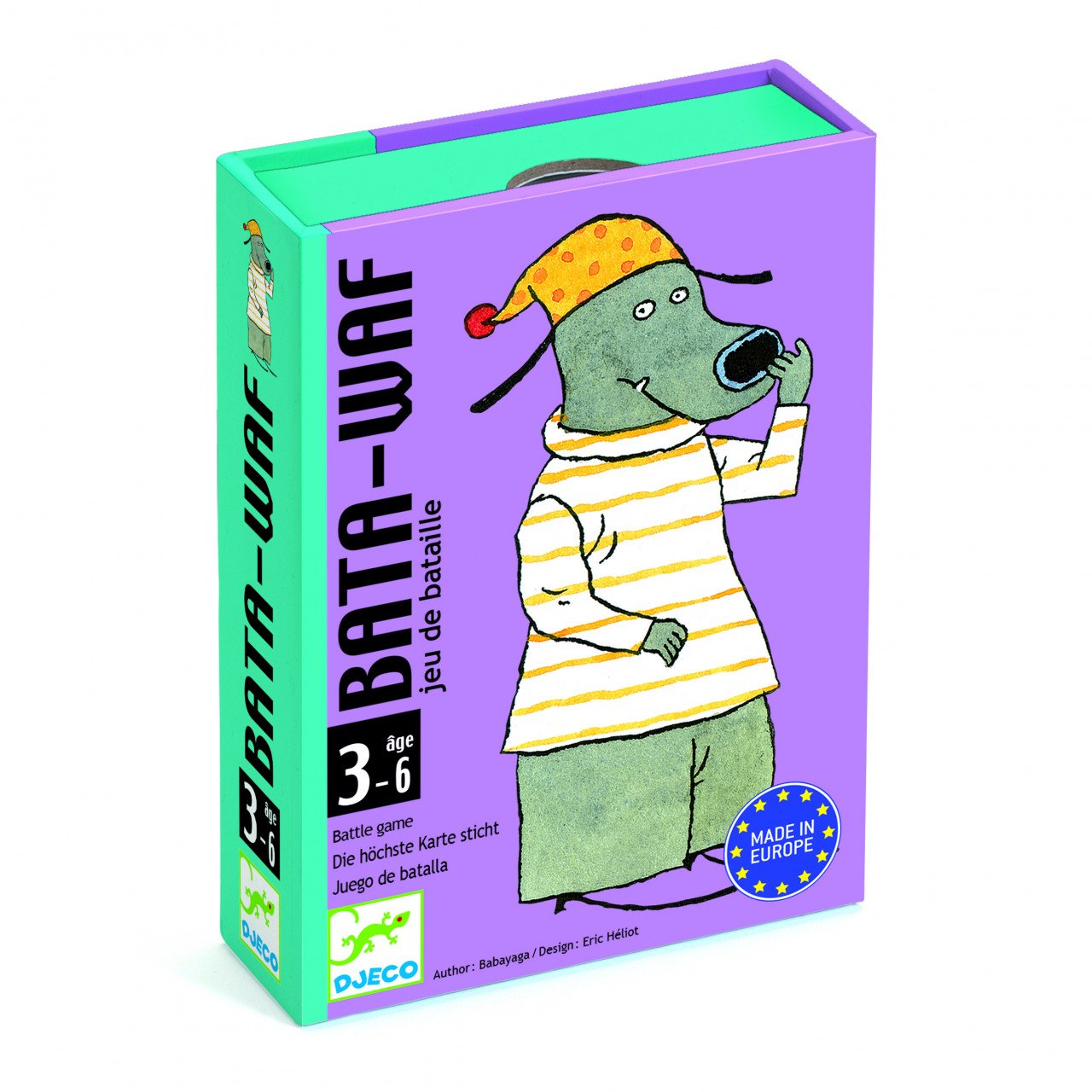 Joc de carti Batawaf Un joc de competiţie, foarte îndrăgit de cei mici, adaptare după clasicul ”război”- cartea cu cel mai mare cățel ”bate”. Câștigă cel care reuşeşte să adune cei mai mulţi câini. Conţine 36 de cărţi. Vârsta recomandată: 3-6 ani. Confecționat din materiale și vopsele non toxice conform reglementărilor EN71&ASTM. Certificare FSC®. AVERTISMENT: Contraindicat copiilor sub 3 ani. Se recomandă supravegherea copilului de către un adult în timpul jocului. Citiți cu atenție eticheta produsului înainte de a înmâna jocul copilului. Producător: Djeco, Franța. Fabricat în Europa. BataWaf - descarca aici regulile jocului https://www.youtube.com/watch?v=UiYU4p8YZfw