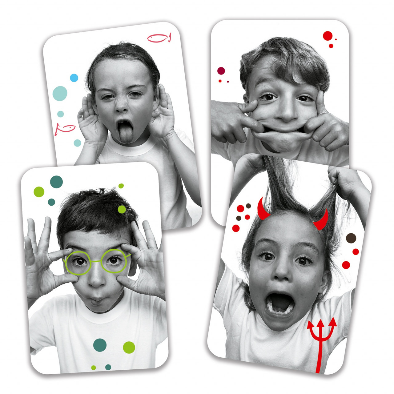 Joc de observatie si memorie Grimase Un joc de memorie și de observație în echipă. Jucătorii vor trebui să-și demonstreze talentul în arta subtilă de a face fețe pentru a fi aleși câștigători. Observă ce face partenerul tău de echipă și dovedește că ai o memorie de elefant. Echipa care reusește să colaboreze cel mai bine, să mimeze și să ghicească cele mai multe cărţi, câștigă. Distracție și chicoteli garantate! Jocul conţine 72 de cărţi. Vârsta recomandată: 6 - 99 ani. Confecționat din materiale și vopsele non toxice certificate FSC®. AVERTISMENT: Contraindicat copiilor sub 3 ani. Se recomandă supravegherea copilului de către un adult în timpul jocului. Producător: Djeco, Franța. Grimase - descarca aici regulile jocului