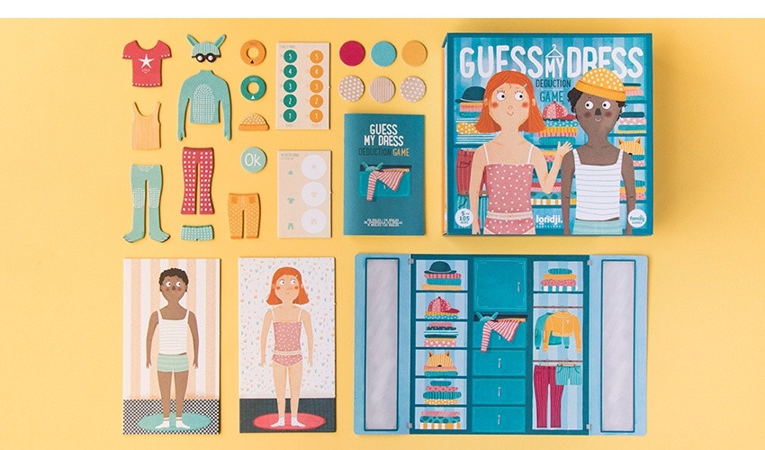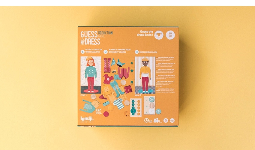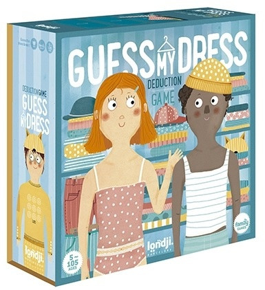 Joc Ghicește ce haine port Joc de deducție... cea mai colorată garderobă. Creează ținute cât mai interesante sau asortate, folosind piesele vestimentare cu detalii inedite. Ceilalți vor încerca să ghicească hainele alese, folosind logica și inspirația. Jocul conține: 2 planșe manechin (fată, băiat), 54 piese vestimentare - câte 27 pentru fiecare jucător, planșă pentru socotit, planșă pentru validare, tokenuri pentru socotit/validat, săculeț textil pentru haine. Vârsta recomandată: 5-105 ani. Confecționat din hârtie FSC și carton reciclat. Conform reglementarilor EN71&ASTM. AVERTISMENT: Contraindicat copiilor sub 3 ani. Se recomandă supravegherea copilului de către un adult în timpul jocului. Producător: Londji, Spania. Ilustrat de Can Seixanta FG015U Ghiceste ce haine port - descarca aici regulile jocului