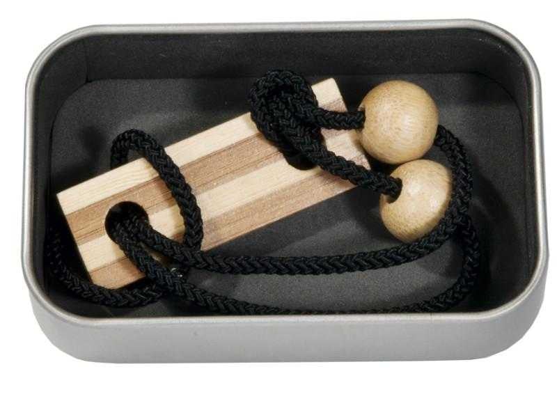 Test IQ puzzle lemn de bambus cu șnur Elibereaza inelul-4 Test IQ puzzle cu șnur negru și lemn de bambus într-o cutie metalică: două bile - o placă. Dezvoltă perspicacitatea, inteligența, răbdarea și concentrarea. Dimensiuni cutie: 6 x 2,2 x 9,4 cm (L x A x P). Confecționat din lemn și materiale non-toxice conform reglementărilor EN71 & ASTM. Certificate FSC®. Vârsta recomandată: +8 ani. Grad de dificultate: **** AVERTISMENT: Contraindicat copiilor sub 3 ani. Conține piese mici ce pot fi înghițite, șnur lung. A se utiliza sub stricta supraveghere a unei persoane adulte. Producător: Fridolin, Germania.