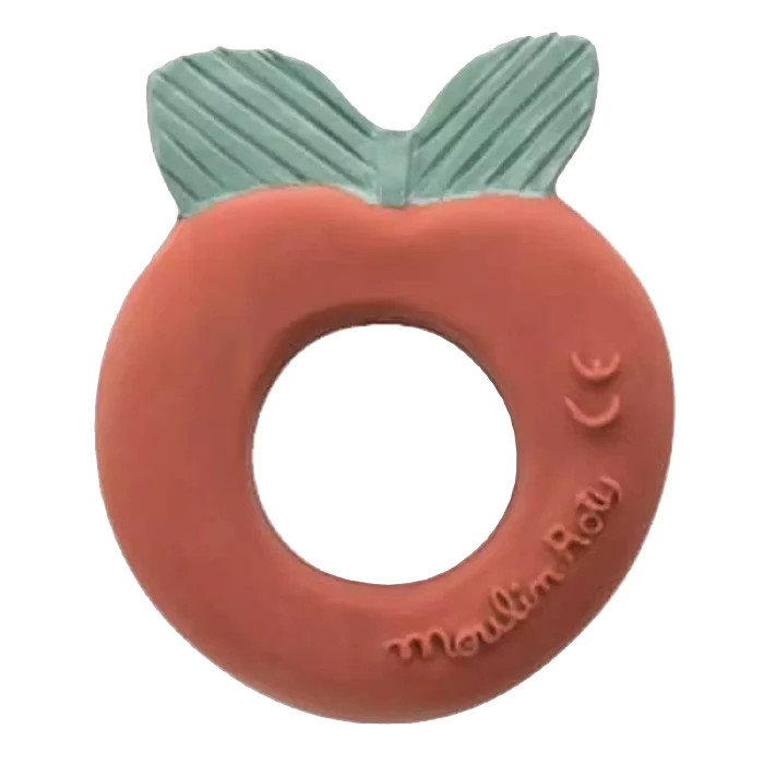 Jucarie gingivala Mar Inel de dentitie din cauciuc 100% natural, în formă de măr dulce, ideal pentru calmarea gingiilor dureroase ale bebelusului! Este echipat cu suprafețe striate pentru formarea dinților și proeminențe rotunjite pentru calmarea gingiilor. Este ambalat într-o cutie deschisă, imprimată cu informatiile esentiale explicate cu cea mai mare simplitate! Moale și masticabil pentru a ușura disconfortul de dentiție Poate fi folosit și ca jucărie sau jucărie de baie Cauciucul natural este un material sigur și sănătos pentru bebeluș. Arborele de cauciuc este cultivat fără niciun tratament chimic, apoi recoltat și prelucrat manual într-un mod responsabil. Pictat manual cu pigmenți naturali Fără orificii pentru a preveni acumularea de murdărie și bacterii în interior. Spălați manual cu apă și săpun. Nu sterilizați. Nu conține PVC, BPA, ftalat și nitrozamină Diametru 8 cm. Vârsta recomandată: + 0 luni. Confecţionat din cauciuc natural (Hevea). Conform reglementarilor EN71&ASTM. A se folosi sub directa supraveghere a unei persoane adulte. Înlăturaţi ambalajul și eticheta înainte de a oferi jucăria copilului. Producător: Moulin Roty