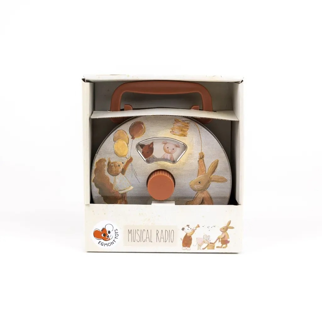 Radio muzical pentru copii Prietenii Cu acest radio muzical fermecător, orice moment liniștit devine o mică petrecere muzicală în pădure. Prin simpla rotire a butonului, o melodie plăcută este redată , iar micii prieteni - un vulpoi și un purceluș - apar dansând prin fereastra specială , animând scena într-un mod jucăuș și captivant. Potrivită pentru joc sau pentru a-i ajuta pe cei mici să adoarmă. Funcționează mecanic, fără baterii. Vârsta recomandată: + 3 ani. AVERTISMENT: Contraindicat copiilor sub 3 ani, poate conține piese mici care pot fi înghițite. A se folosi sub atenta supraveghere a unui adult. A nu se lăsa la îndemâna copiilor sub 3 ani. Producător: Egmont Toys, Belgia