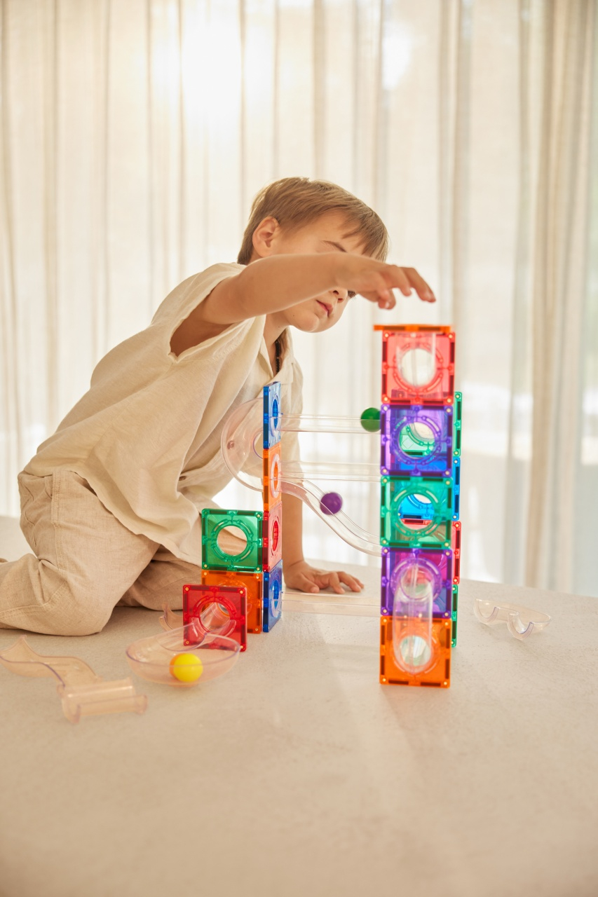 Cleverclixx Circuit cu bile Compact – Construiește circuite pentru bile! Set magnetic pentru construirea unui circuit cu bile plin de culoare , oferind ore întregi de distracție și creativitate. 🚀 Construcții interactive & joacă fără limite Creează trasee pentru bile și urmărește-le în acțiune! Stimulează creativitatea, imaginația și îndemânarea copilului. 🎓 Joacă educativă – prin metoda STEAM Seturile magnetic Cleverclixx cresc odată cu copilul! De la 3 ani – învață bazele construcțiilor 3D. Pe măsură ce cresc , copiii pot realiza structuri mai complexe. Util și în școală – ajută la înțelegerea conceptelor matematice și a gândirii logice. De ce să alegi Cleverclixx? 🔹 Stimulează creativitatea și imaginația – Magneții au ceva magic, captivând copiii și oferindu-le libertatea de a construi forme și structuri unice. 🔹 Compatibil și extensibil – Toate seturile Cleverclixx sunt compatibile atât între ele cât și cu alte seturi magnetice, permițând extinderea colecției și dezvoltarea continuă a creativității. 🔹 Joacă versatilă – Construiește pe podea sau du creativitatea la un alt nivel atașând construcțiile pe suprafețe magnetice, precum caloriferele . Folosește markere lavabile pentru a desena litere, numere sau forme și transformă joaca într-o experiență educativă! 🔹 Încurajează învățarea STEAM – Cleverclixx dezvoltă abilități din domeniile Știință, Tehnologie, Inginerie, Artă și Matematică (STEAM) , transformând învățarea într-un proces practic, captivant și distractiv. Educațional și sigur Seturile Cleverclixx sunt utilizate în grădinițe și școli primare din întreaga lume pentru a sprijini dezvoltarea abilităților motorii, gândirii logice și rezolvării problemelor . Misiunea Cleverclixx este de a crea jucării educaționale care inspiră curiozitatea, creativitatea și dorința de a învăța pe tot parcursul vieții. Detalii produs ✔ 60 piese magnetice, culori diferite ✔ Recomandat pentru copii de la 3 ani ✔ Fabricat din plastic MABS de înaltă calitate ✔ Fără BPA - sigur pentru copii ✔ Certificat (CPSC, CE, EN71, ASTM) Lasă imaginația să construiască fără limite cu Cleverclixx! 🚀 Avertisment! Nu este potrivit pentru copiii sub 3 ani. Conține piese mici. Se recomandă supravegherea copilului de către un adult în timpul jocului. Produs de Cleverclixx