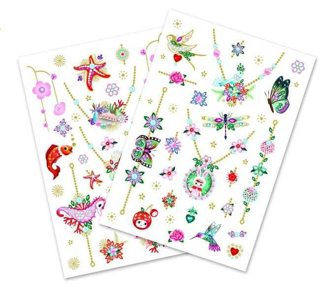 Tatuaje Bijuterii Două foi de tatuaje temporare cu bijuterii cu tematică marină - sirene frumoase în lumea lor subacvatică. Copiii vor adora aceste tatuaje, completate cu detalii aurii. Aceste tatuaje temporare sunt pre-tăiate pentru a le face ușor de utilizat și transferat folosind puțină apă. Se aplică tatuajul pe pielea uscată, se umezește pelicula și se apasă câteva secunde. Testate dermatologic. Conținut: 2 foi de tatuaje temporare care strălucesc în întuneric și 1 set de instrucțiuni. Vârsta recomandată: +3 ani. Confecționate din materiale și culori non-toxice. Certificate FSC®. AVERTISMENT: Contraindicat copiilor sub 3 ani. A se utiliza sub directa supraveghere a unei persoane adulte. Producator: Djeco, Franța