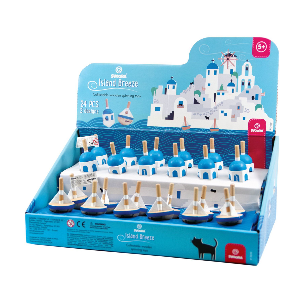 Titirez din lemn, casuta Colecția de titirezi din lemn "Briza insulelor" - tradiționala combinație de albastru și alb a insulelor grecești prin intermediul a 2 selecții diferite: Capela și Barcuță. O jucărie creativă pentru îndrăgostiții de insulele Greciei, o notă unică insulară pentru fiecare casă. Cât de repede se poate roti un titirez? Învârte-l cât poți de tare ca lumea din jurul lui să zboare. Dimensiune titirez 2.5 x 2.5 x 6 cm Confecționat din lemn cu vopsele pe baza de apa, conform reglementărilor EN71 & ASTM. Vârsta recomandată: + 5 ani. Avertisment: Contraindicat copiilor sub 3 ani. A se utiliza sub stricta supraveghere a unei persoane adulte. Producător: Svoora, Grecia.