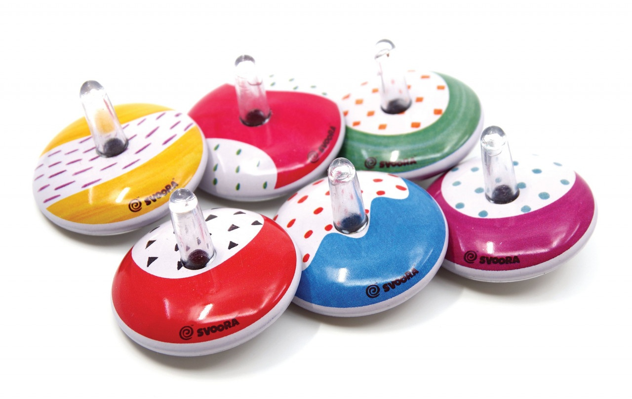 Titirez retro din metal Cât de repede se poate roti un titrez? Învârte-l cât poți de tare ca lumea din jurul lui să zboare. Dimensiune titirez 4 x 4 x 3.5 cm Confecționat din metal și plastic, conform reglementărilor EN71 & ASTM. Vârsta recomandată: + 4 ani. Avertisment: Contraindicat copiilor sub 3 ani. A se utiliza sub stricta supraveghere a unei persoane adulte. Producător: Svoora, Grecia.