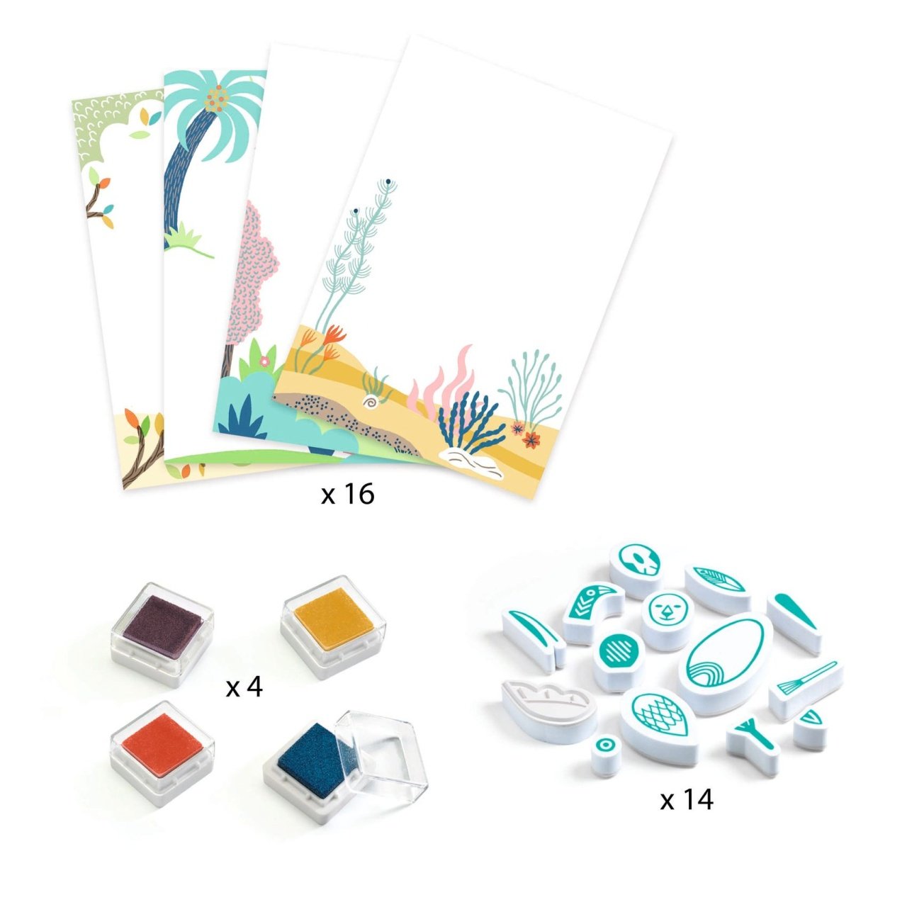Joc creativ cu stampile Animale surprinzatoare Un set de ștampile pe tema animalelor care le permite copiilor să își compună propriile creaturi prin combinarea formelor și variația culorilor. Copiii se distrează schimbând combinațiile și lăsându-și imaginația să zburde. Scenele prind viață cu ceva diferit de fiecare dată! 14 ștampile groase, ușor de mânuit. Forme de combinat pentru a crea animale originale. Atât de multe combinații de descoperit! 4 culori de cerneală ușor de spălat. Cutie de depozitare cu închidere elastică pentru a depozita materialele după terminarea activității. O broșură explicativă care detaliază activitatea pas cu pas. Continut: 16 planșe de completat (15 x 21 cm), 14 ștampile, 4 tușiere (albastru marin, galben, vermilion, taupe), 1 broșură cu explicații pas cu pas. Vârsta recomandată: 5 - 8 ani. Fabricat din hartie, carton, plastic, cerneală. AVERTISMENT: Contraindicat copiilor sub 3 ani, conține piese mici, pericol de sufocare. A se utiliza sub directa supraveghere a unui adult. Producător: Djeco.