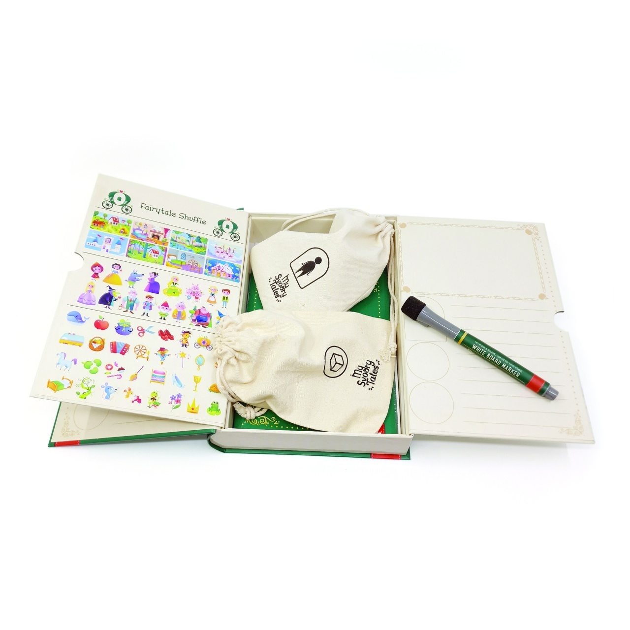 Creează, spune și rescrie propriile povești! Joc creativ și educativ premiat, ideal pentru dezvoltarea imaginației și a gândirii critice la copii. Copiii își pot crea propriile povești, cu finaluri alternative, folosind structura narativă clasică: început, conflict, rezolvare. Copiii pot crea zeci de povești diferite, fiecare cu propriile personaje, obiecte și întâmplări. Jocul se bazează pe structura narativă în 3 pași (început – conflict – rezolvare), ceea ce îl face ideal atât pentru joacă liberă, cât și pentru activități educaționale în grădinițe sau ateliere. Inspirat din basmele clasice, jocul include: 8 locuri diferite (pădure, castel, peșteră etc.) 16 personaje (prinți, vrăjitoare, animale magice etc.) 32 obiecte magnetice (comori, chei, baghete magice...) marker lavabil pentru notițe și completări creative Vârsta recomandată: + 3 ani. Material: Hârtie, magnet, marker. Conform standardelor EN71, ASTM, AVERTISMENT! Contraindicat copiilor sub 3 ani. A se folosi sub directa supraveghere a unei persoane adulte. Producător: Svoora, Grecia