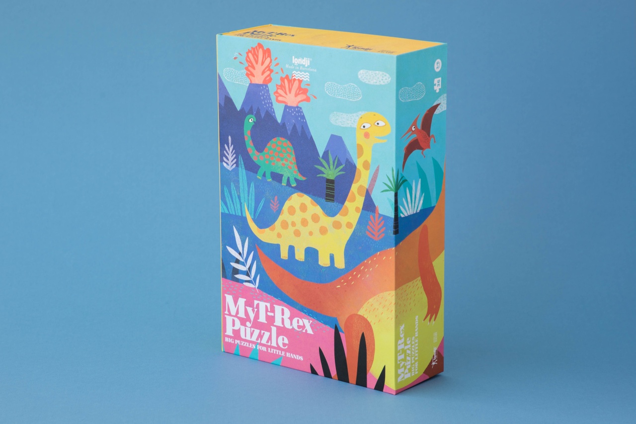 Puzzle mare pentru mâini mici T-Rex Bine ați venit în Jurassicul Londji. T-Rex vă întâmpină pentru a vă deschide porțile către o lume fantastică în care triceratops, diplodocus și pterodactyls vă vor lua la o plimbare. Roarrrrrr! Puzzle-ul permite asamblarea dinozaurului separat de peisaj. Un puzzle formă cu 36 de piese (15 + 21). 📍 Ilustrație: Mariana Ruiz Johnson 📍 Dimensiune puzzle: 46 x 67 cm 📍 Vârsta recomandată: 3+ ani 📍 Material: Hârtie FSC și carton reciclat 📍 Fabricat în Barcelona Avertisment! Nerecomandat copiilor sub 3 ani. Conține piese mici. Fabricat de Londji.