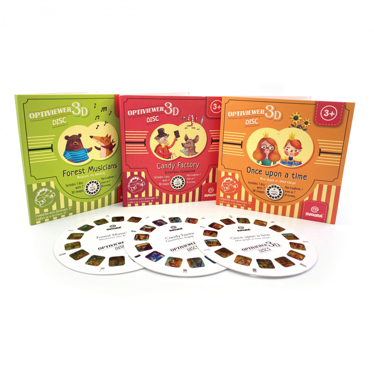 ROLA OPTIVIEWER 3D "FABRICA DE BOMBOANE" Haideți să explorăm o poveste uimitoare "Fabrica de bomboane"! 7 imagini 3D impresionante vin să extindă distracția 3D Optiviewer! Descrierea conținutului imaginilor poate da startul multor povești diferite care sporesc imaginația, dezvoltă observația, lărgesc creativitatea si ajută copilul să rămână concentrat pe un anumit subiect! Fiecare pachet de bobine include o mică broșură cu toate imaginile care pot fi explorate de părinți si copii simultan, sporind legătura dintre ei! Sunt disponibile 3 povești diferite compatibile cu 3D Optiviewer (#03005) și cu proiectoare similare. Introduceți discul, apoi apăsați maneta. În interiorul acestui dispozitiv de epocă, descoperiți o lume magică 3D. Imaginile sunt clare, fiind compuse din fotografii suprapuse care redau real obiectele. Vârsta recomandată: +3 ani. Confecţionată din carton și nylon. Conform reglementarilor EN71&ASTM. AVERTISMENT! A se folosi sub directa supraveghere a unei persoane adulte. Citiţi cu atenţie eticheta înainte de a înmâna jucăria copilului. Producător: Svoora, Grecia.
