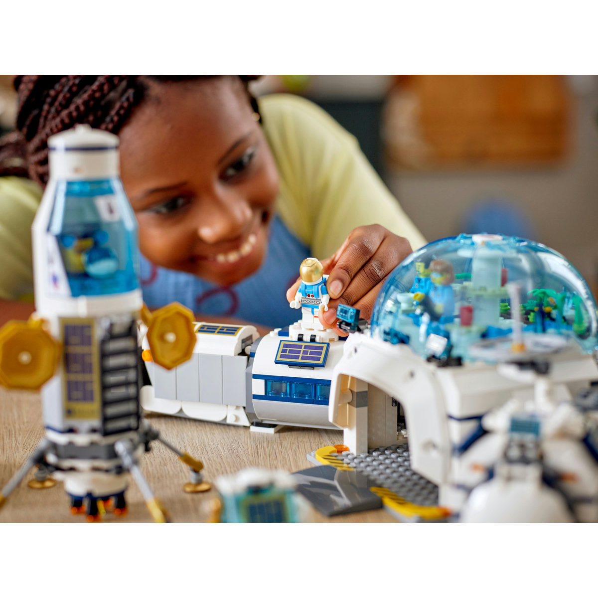 Aterizează cu modulul selenar pentru aventuri formidabile la Baza de cercetare selenară inspirată de NASA. Ridică şi deplasează obiecte cu drona cu macara la înălţime, recuperează probe cu rover-ul VIPER şi efectuează experimente în laboratorul ştiinţific şi în cel botanic. Apoi sari în vehiculul selenar şi porneşte spre camera de depresurizare şi domul de cazare, unde îţi poţi păstra casca şi rucsacul până la următoarea misiune!