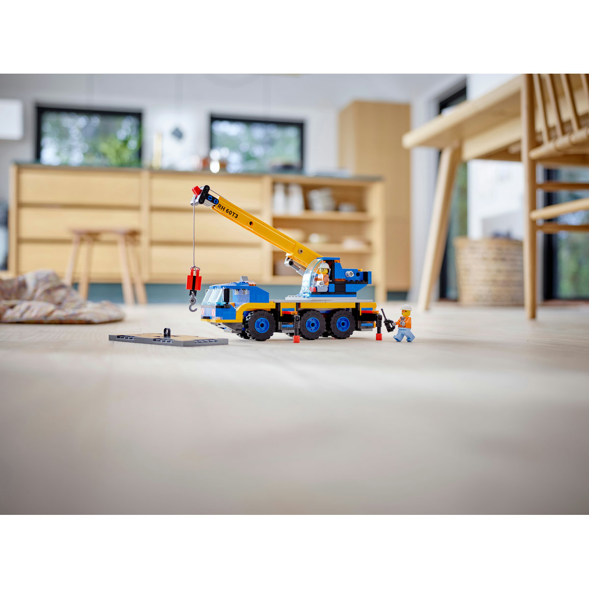 Sari la bordul puternicei macarale mobile şi mergi la LEGO® City pentru lucrări grele de ridicare. Acest formidabil camion cu 6 roţi este plin de funcţii cool. Coboară picioarele de sprijin, apoi ridică, roteşte şi extinde braţul pentru a ridica Placa de drum în poziţie - construcţia oraşului tău n-a fost niciodată atât de distractivă! După ce termini, fixează cârligul vinciului şi porneşte spre următoarea lucrare.