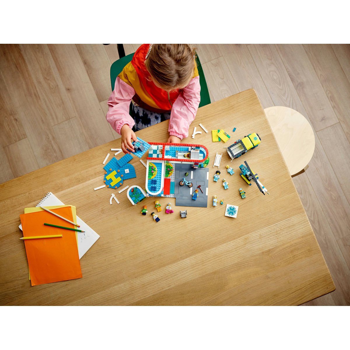 E multă agitaţie la spital. Dr. Flieber îngrijeşte o mămică şi copilul ei nou născut, în timp ce Dr. Spetzel face un test RMN, iar clovnul Citrus amuză copiii. Afară, Wallop e urcat cu targa în ambulanţă după ce a căzut de pe motocicleta de cascadorie, iar pilotul decolează de pe acoperiş cu elicopterul de salvare. Alătură-te mulţimii de personaje pentru aventuri pasionante la Spitalul LEGO® City!