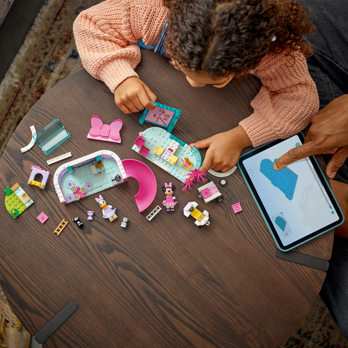 Cuprinde minifigurinele LEGO Disney Minnie Mouse si Ratusca Daisy.