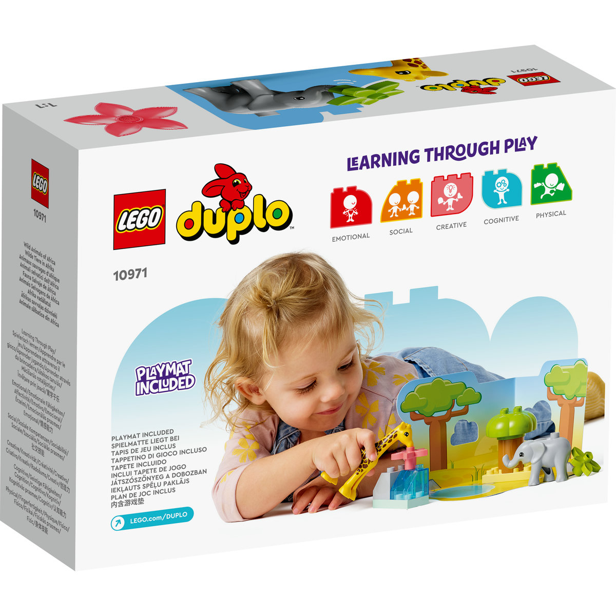 Pătrunde într-o lume a jocului fantezist cu LEGO® DUPLO® Animale sălbatice din Africa (10971) şi fii martorul etapelor preţioase de dezvoltare din viaţa micilor iubitori de animale în vârstă de doi ani şi mai mari.