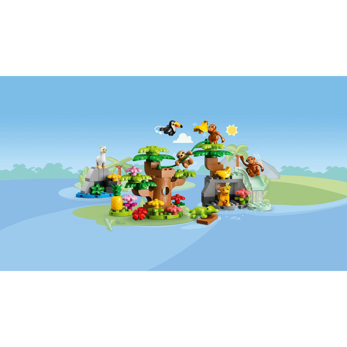 LEGO® DUPLO® Animale sălbatice din America de Sud (10973) invită copiii de doi ani şi mai mari în junglă, în vreme ce părinţii devin martorii unor etape de dezvoltare preţioase din viaţa preşcolarului lor iubitor de animale.
