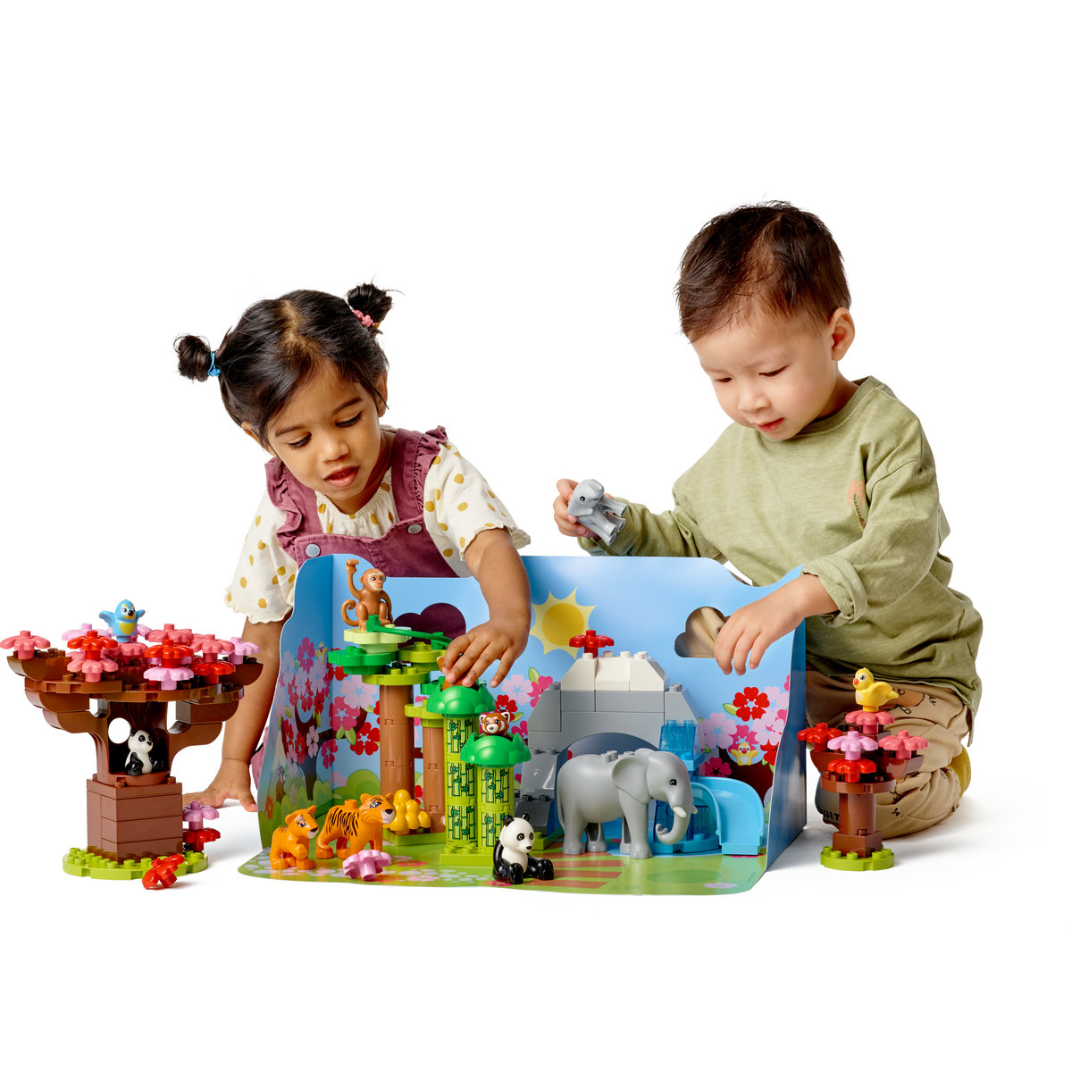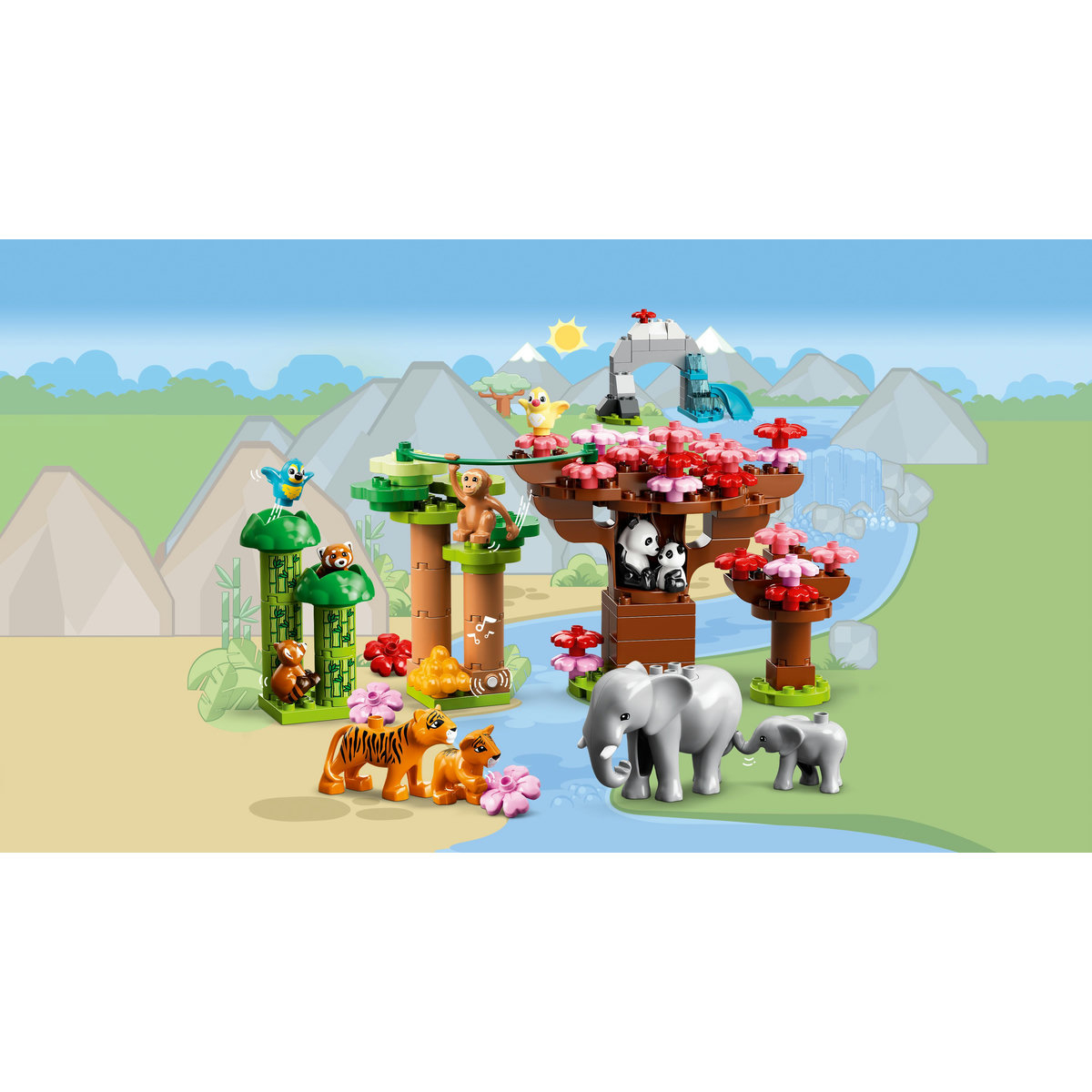 Jucăria LEGO® DUPLO® Animale sălbatice din Asia (10974) cuprinde numeroase elemente amuzante şi animale uimitoare care să le stârnească copiilor de doi ani şi mai mari pasiunea pentru viaţa sălbatică!