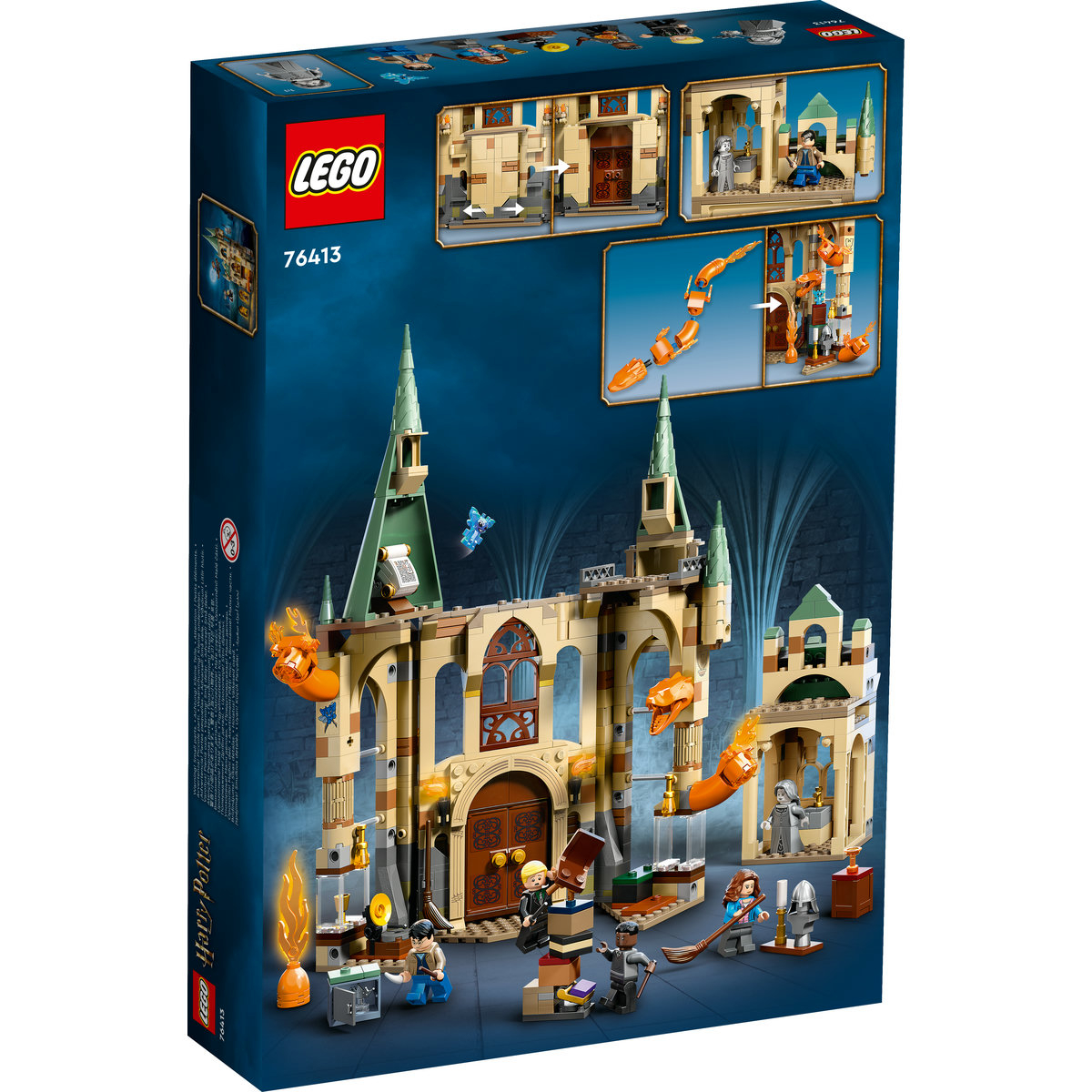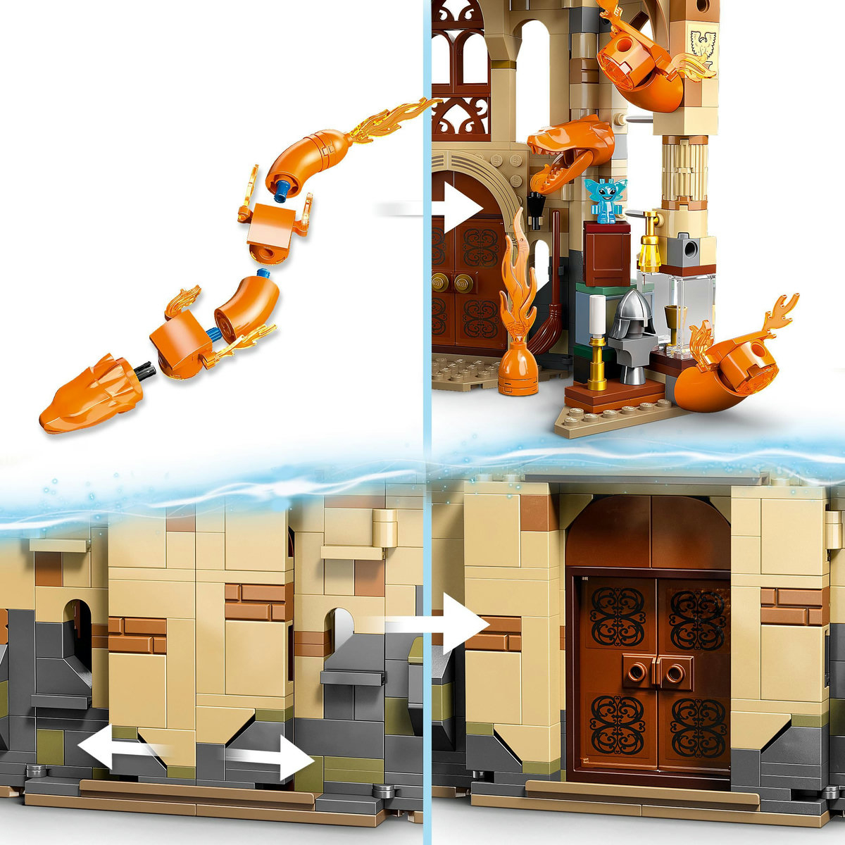 Pune în scenă evadarea din Harry Potter şi Talismanele Morţii +u2013 Partea 2 cu 5 minifigurine +u2013 Harry Potter, Hermione Granger™, Draco Reacredinţă, Blaise Zabini şi Doamna cenuşie +u2013 plus o figurină spiriduş de Cornwall şi o figurină construibilă Fiendfyre, care poate fi reconstruită într-un şarpe de foc. Acest set LEGO se conectează cu altele din aceeaşi gamă pentru a crea un castel Hogwarts complet.