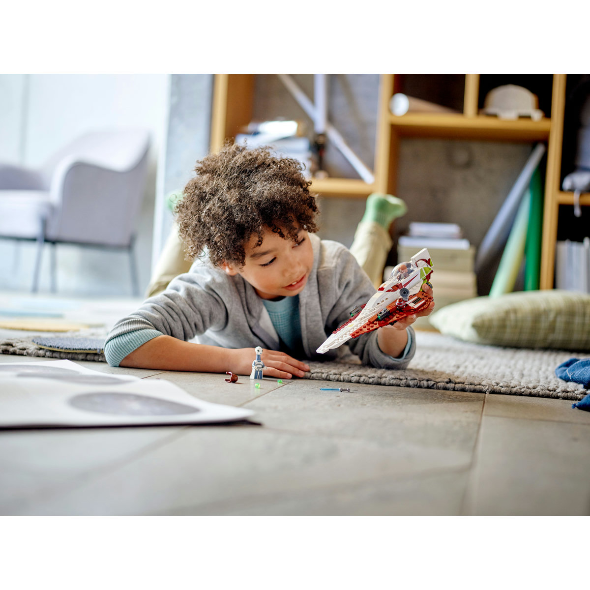 Modelul include o carlinga care se deschide pentru minifigurina Obi-Wan, lansatoare de piroane, tren de aterizare retractabil, suport pentru sabia laser si un punct de atasare pe aripa pentru droidul R4-P17. Cu detalii autentice si functii interactive, nava este perfecta atat pentru joaca, cat si pentru etalare.