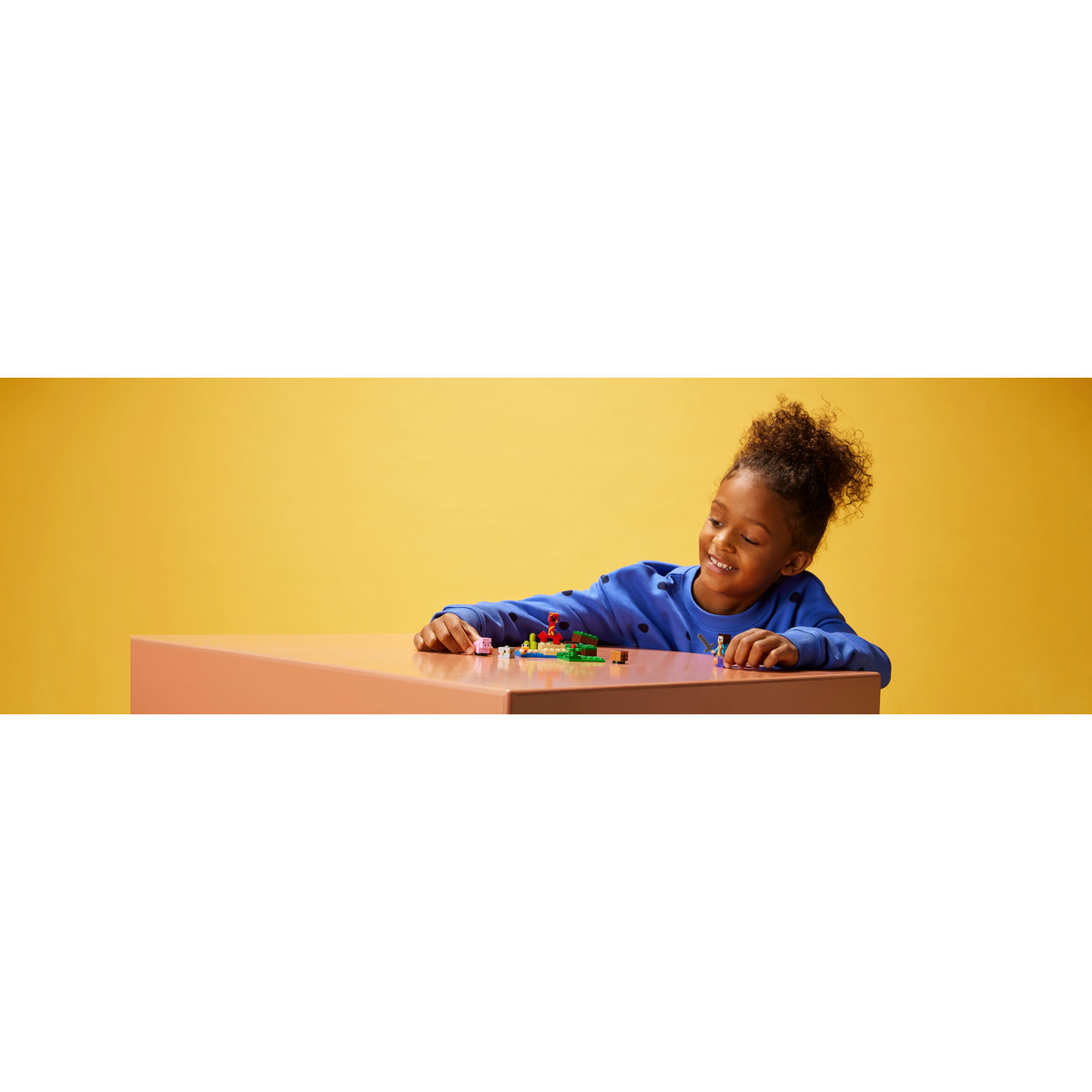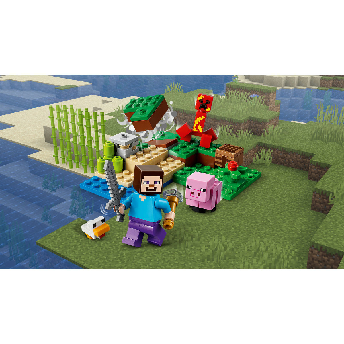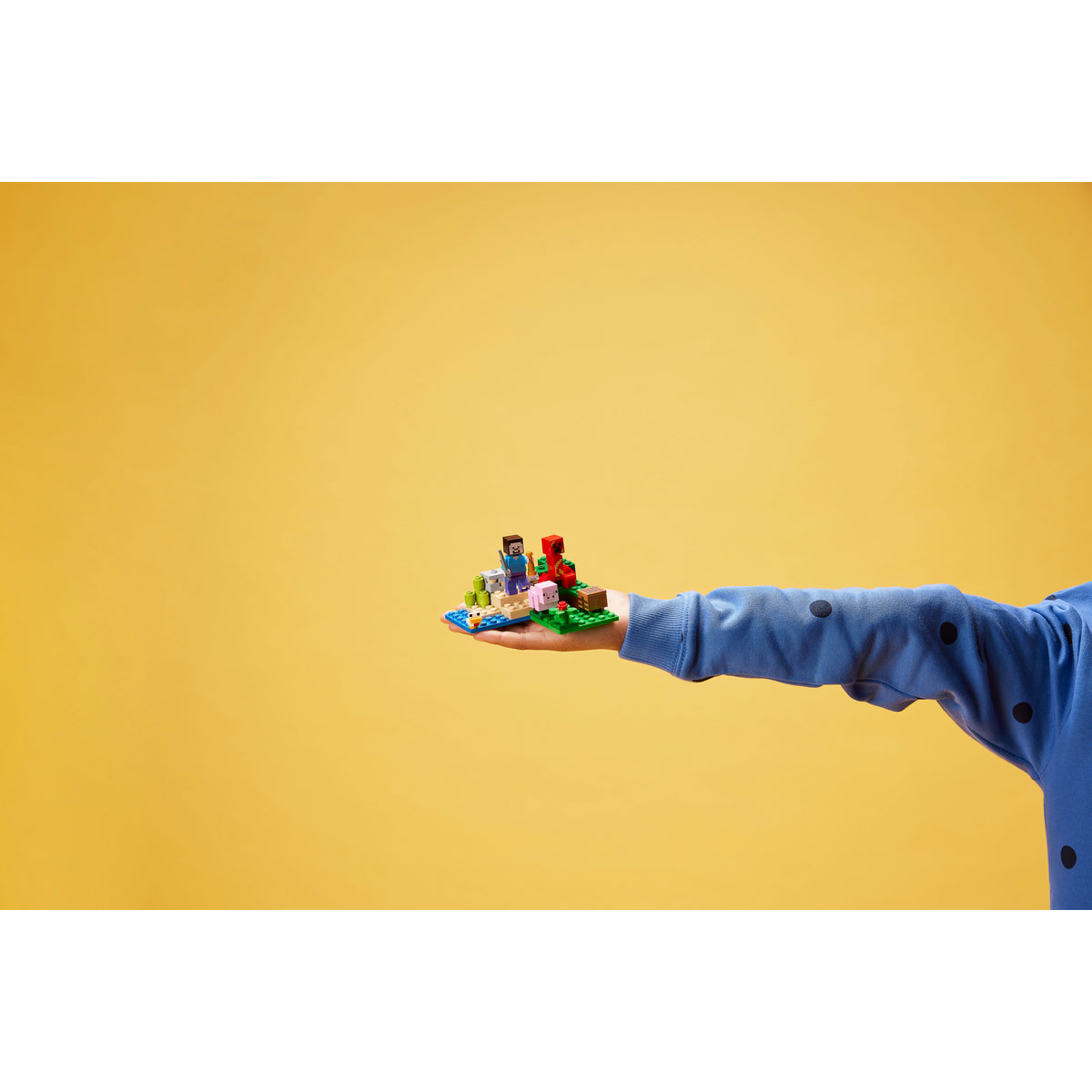 Alătură-te lui Steve pentru o aventură explozivă Minecraft® în biomul de pe câmpie. Apucă-te de lucru la masa de crafting cu blocuri de minereu de fier. Foloseşte-ţi luneta pentru a te feri de pericol. Ce poţi să vezi? Un purceluş, un puişor... un Creeper™ exploziv! Apucă o sabie pentru a-l apăra pe Steve. Nu ai mult timp: Creeperul exploziv este deja roşu! Apasă comutatorul şi - bum! +u2013 o explozie îl aruncă în aer.