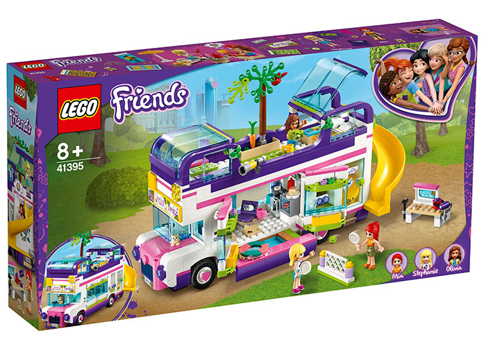 Ofera-le copiilor creativi ocazia de a porni într-o calatorie cu Autobuzul prieteniei LEGO Friends! La bordul acestui autobuz pentru mini-papu?i plin de func?ii ?i accesorii, tinerii constructori vor descoperi nenumarate op?iuni de joaca. Ace?tia î?i vor putea imagina pove?ti distractive cu cele 3 mini-papu?i incluse. Autobuzul este dotat cu paturi unde prietenele pot petrece nop?i povestind, iar la exterior are un tobogan ?i pe acoperis o zona perfecta de unde pot privi stelele.
