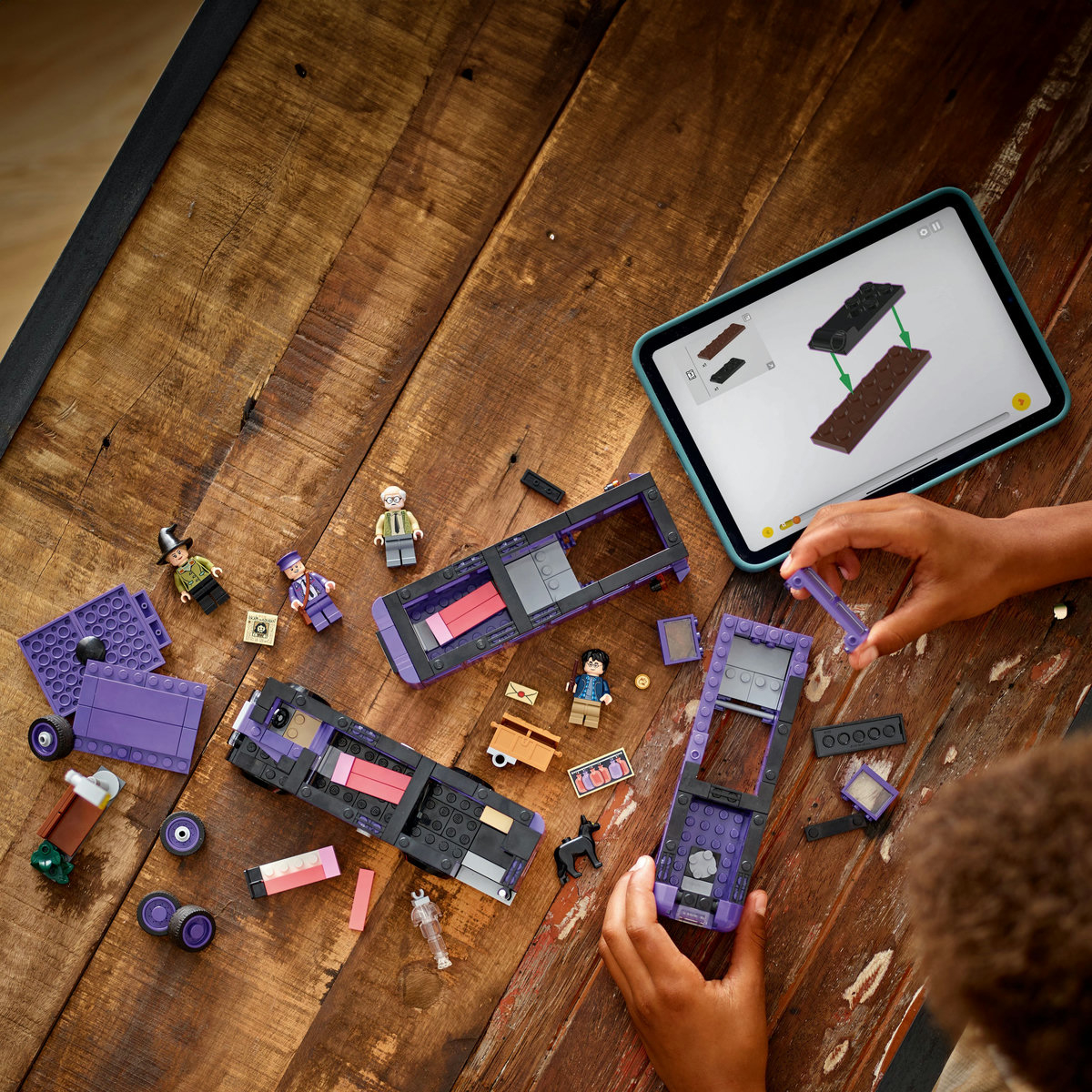 Acest set de construcţie cu jucărie magică include şi 5 personaje LEGO Harry Potter +u2013 Harry Potter, Ernie Prang, Stan Shunpike, o vrăjitoare adormită şi Padfoot™ +u2013 pentru a recrea scene memorabile din Harry Potter şi prizonierul din Azkaban™. Alte detalii autentice, între care un stâlp de iluminat construibil unde Harry a aşteptat (şi a fost speriat de Padfoot!) înainte de sosirea autobuzului Knight Bus, cufărul lui Harry şi un element ziar Profetul zilei cu titlul de articol +u201eEvadare din Azkaban+u201d cresc posibilităţile creative de joacă pe roluri.