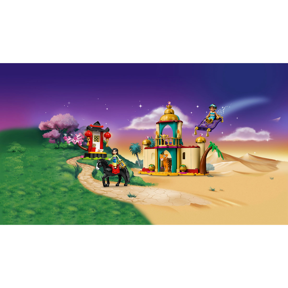 Petrece timp în Agrabah+u00a0cu Jasmine de la Disney şi tigrul ei Rajah! Vizitează palatul şi explorează-l, apoi urcă-te pe balcon pentru a admira priveliştea. Stai, cine-i acolo? Ura, Mulan, Khan şi Cri-kee au venit în vizită! Savurează câteva gustări în bucătărie şi apoi arată-i lui Mulan împrejurimile. Sari pe covorul magic şi călătoreşte spre sanctuarul lui Mulan pentru a vedea florile de prun înainte de a porni înapoi spre palat!