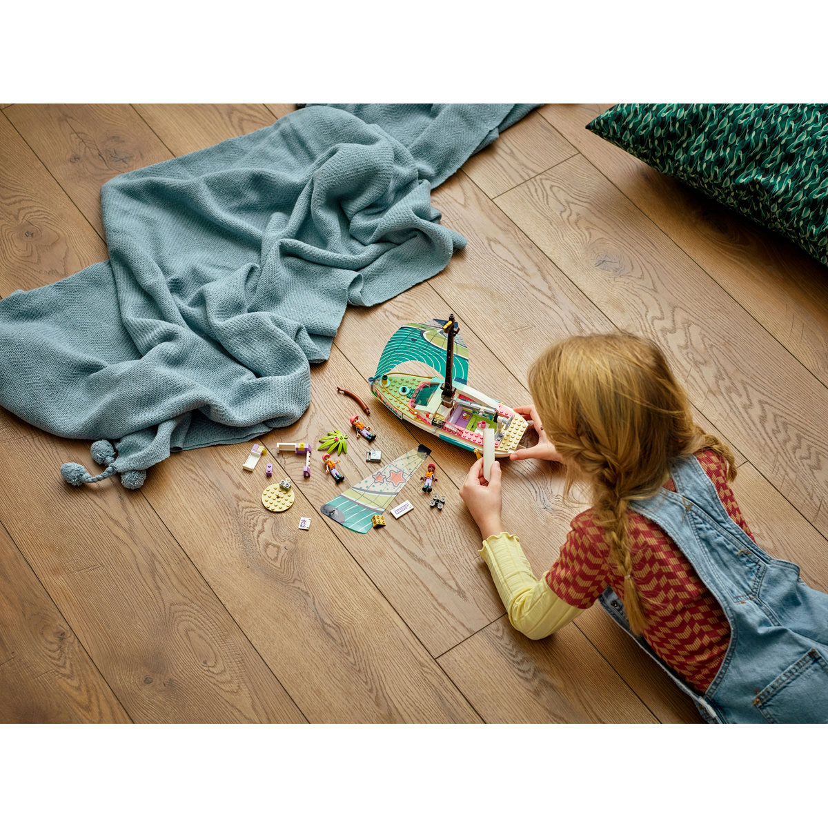 Imaginaţia porneşte în aventuri epice; Copiii se cufundă în joacă creativă pe roluri în timp ce îşi închipuie că navighează în jurul lumii cu această barcă de curse realistă.; Joacă creativă pentru copii care adoră marea; Lărgeşte orizonturile celor mici cu acest set barcă din cărămizi, care include 3 minipăpuşi şi o linie de sosire de construit.; Detalii realiste; Barca include o velă flexibilă şi o timonă mobilă.; Plonjează în joaca dramatică; Copiii fac curse în jurul lumii încercând să depăşească recordul!; Conţine 3 minipăpuşi; Include LEGO® Friends Stephanie, Elijah şi Cpt. Maxine.; Extinde joaca şi sporeşte distracţia; Pentru aventuri nesfârşite, adaugă şi alte seturi LEGO® Friends. Fiecare set se vinde separat şi este disponibil în momente diferite.; Un cadou captivant pentru micii aventurieri; Acest set creativ este cadoul ideal de zi de naştere sau altă ocazie specială pentru băieţii şi fetele care adoră joaca imaginativă.