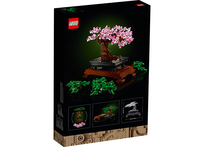 Arta bonsai bucura de secole intregi imaginatia iubitorilor de copaci. Acum poti sarbatori aceasta arta straveche cu kitul de constructie de model Bonsai LEGO. Bucura-te de o senzatie de calm formand cu grija modelul de arbust bonsai cu frunze verzi sau cu flori roz de cires. Cand esti gata de o schimbare, este usor sa schimbi coroanele colorate pentru a crea un aspect cu totul nou. Priveste mai atent florile roz - vezi broastele minuscule care alcatuiesc fiecare floare? O frumoasa piesa care poate fi expusa Modelul LEGO Bonsai vine cu un ghiveci dreptunghiular si un stativ LEGO din sipci cu aspect de lemn, creand o frumoasa piesa de expunere care poate sta la loc de cinste in orice locuinta sau birou. Fie ca este un cadou de zi de nastere pentru o persoana draga sau un dar pentru tine, acest set va bucura cu siguranta imaginatia cu frumusetea sa. Parte a Colectiei botanice LEGO pentru adulti, include elemente de frunze realizate dintr-un material plastic pe baza de plante, folosind trestie de zahar din surse regenerabile.
