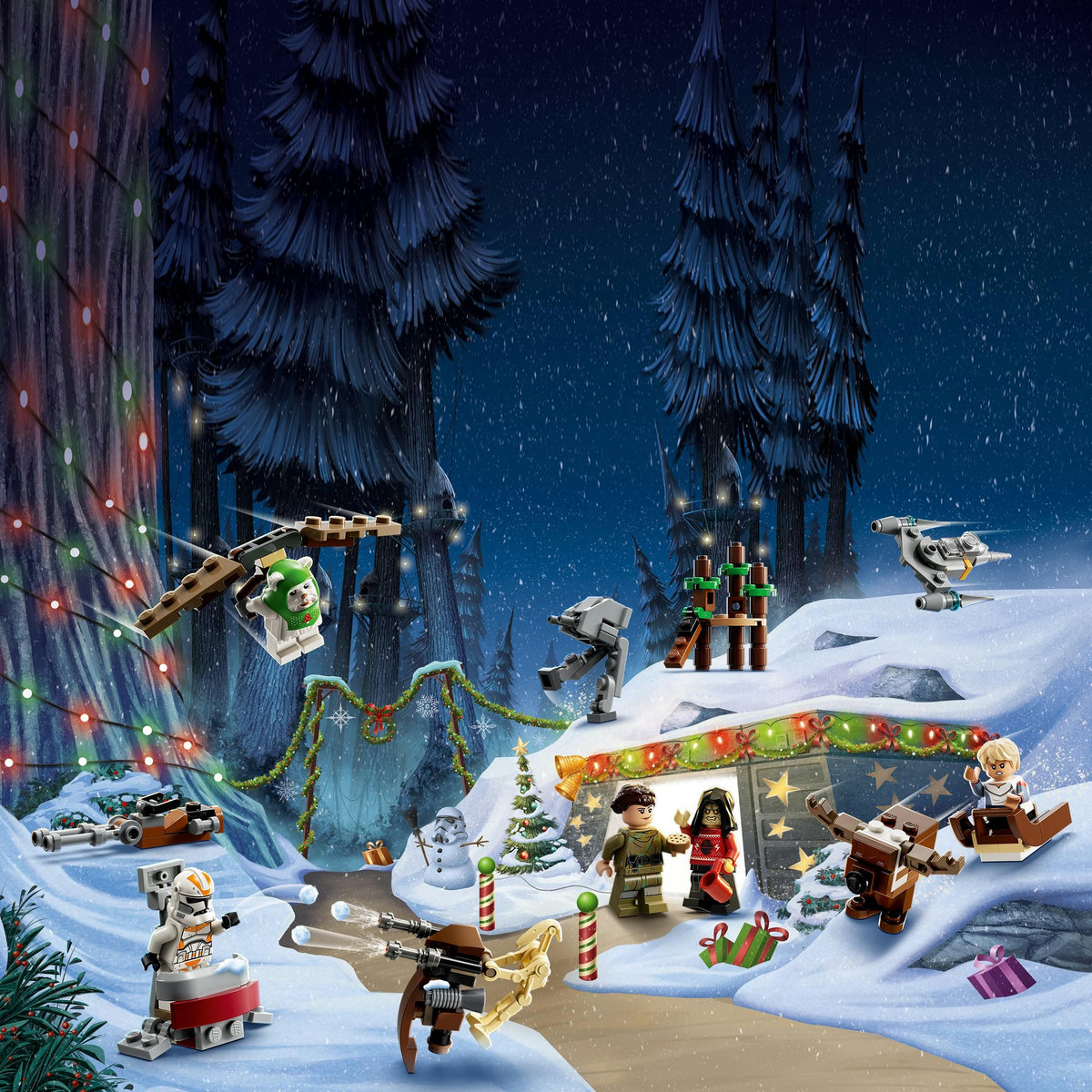 Setul include 8 personaje LEGO® Star Wars™, între care Împăratul Palpatine, un Ewok şi un Droid de boxă în ţinute festive, un Droid Gonk costumat în ren şi Omega cu o sanie. O idee grozavă de cadou de sărbători pentru fanii Star Wars de 6 ani şi mai mari, calendarul mai conţine şi 15 miniconstrucţiii, precum The Justifier, un speeder STAP, Nava stelară N-1 a Mandalorianului, Centrul de comandă al Clonelor şi un sat Ewok care să inspire joaca fantezistă.